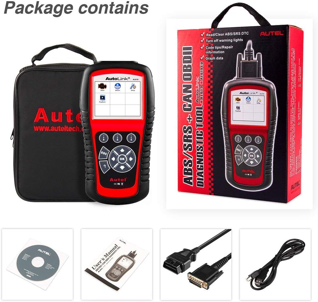 - ★【ABS/SRS UND WIDE CODES DIAGNOSE】:Autel AutoLink AL619 funktioniert bei den meisten Fahrzeugen ab 1996(OBDII&CAN). Diagnose der ABS/SRS Systemcodes bei den meisten Modellen von 1996 und neueren Grossfahrzeugen. Schaltet die Kontrollleuchte für
