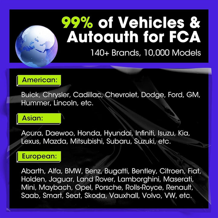 - đăWeltweite Deckung & Garantierte QualitĂ€t der DienstleistungenăDas ECU Programming Scan Tool MK906PRO-TS deckt 80+Marken und 140+ Marken ab, darunter Ford, Honda, Toyota, BMW, Volkswagen, usw., und es deckt 2023 Automodelle ab. DarĂŒber hinaus