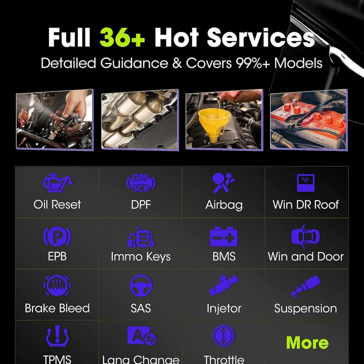 - đă36+ Dienste, Aktualisierung die ganze ZeităUm den tĂ€glichen Reparaturbedarf von vielbeschĂ€ftigten Werkstatttechnikern vollstĂ€ndig zu erfĂŒllen, integriert das bidirektionale Scan-Tool MK906PRO-TS fast alle beliebten speziellen