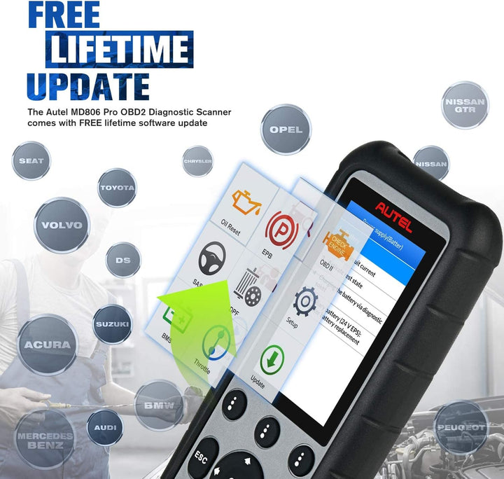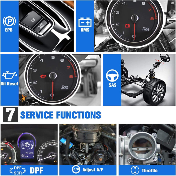 - đăNĂTZLICHE 7 SERVICEFUNKTIONEN FĂR Heimwerkeră Der MD806 Pro unterstĂŒtzt auch 7 heisse Dienste, nĂ€mlich BMS, ĂlrĂŒcksetzung, SRS, EPB, DPF, Drosselung und Anpassung des A/F fĂŒr begrenzte spezifische 30+ Automarken bis 2014/2015 und einige