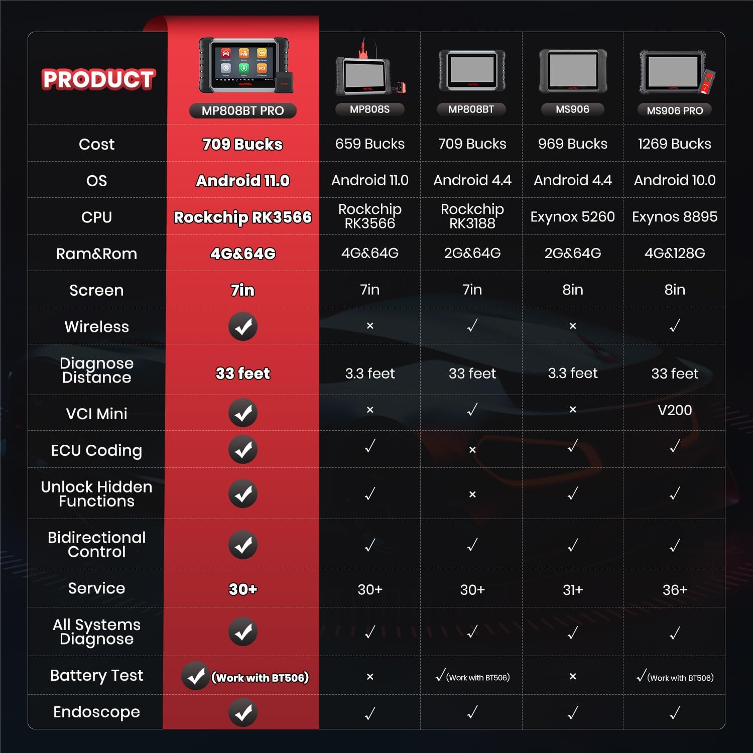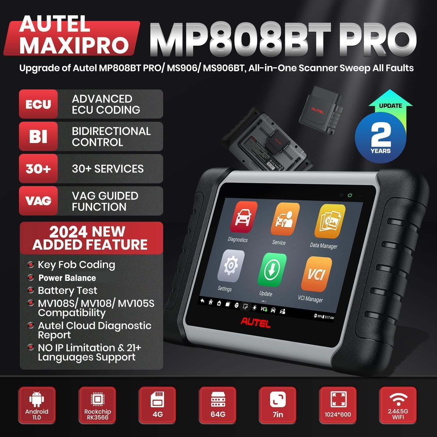 - đ„ă2024 NEUESTES MP808BT PRO, UPGRADE VON MP808BT MP808SăEs gibt wieder gute Neuigkeiten. MP808BT PRO wurde offiziell auf 2 JAHRE KOSTENLOSES UPDATE aktualisiert. Autel MP808BT PRO ist mit Android 11.0 OS und Rockchip RK3566 CPU ausgestattet und