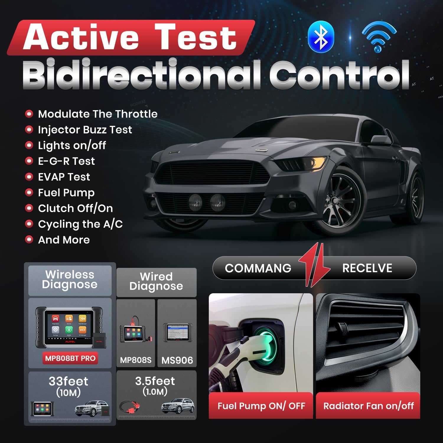 - đ„ăVOLLSTĂNDIGE BIDIREKTIONALE STEUERUNGăAutel MP808BT PRO ist ein Upgrade von MK808/ MK808S/ MK808BT. Autel MP808BT PRO kann Anweisungen an die Fahrzeug-ECU senden und anhand der Reaktion des Stellglieds feststellen, ob der Fehlercode behoben
