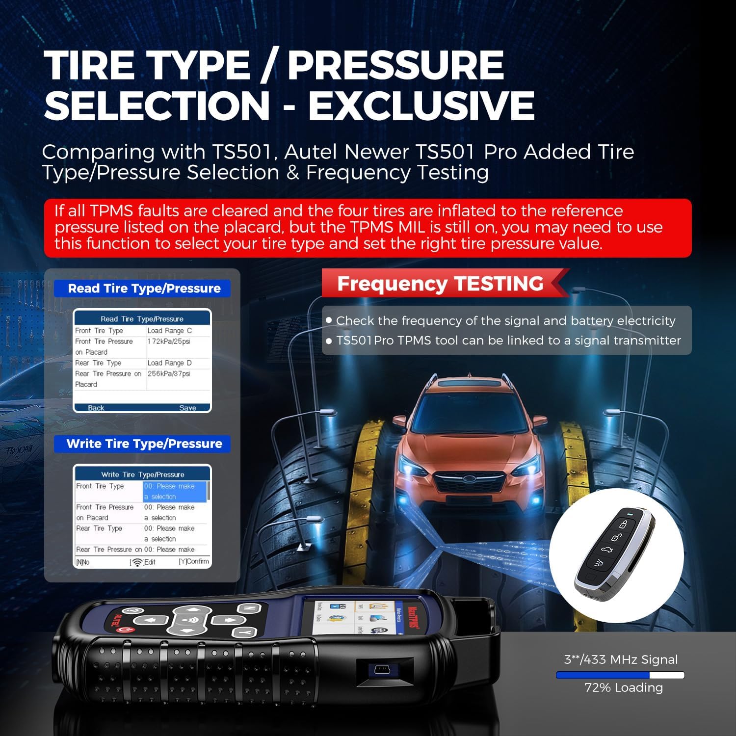 - đăProfessionelles TPMS-Programmier-DiagnosetoolăAutel TS501 kann den Autel MX-Sensor (315/433 MHz) mit Leichtigkeit programmieren, was Ihnen Geld und Gang zum HĂ€ndler erspart. Sie können AUTEL MX-Sensor mit 4 Programmieroptionen programmieren: Kopieren durch Aktivierung, Kopieren durch manuelle Eingabe, automatische Erstellung und Kopieren durch OBD (nicht verfĂŒgbar mit TS408), um den defekten Sensor mit schwacher oder fehlender Batterie zu ersetzen.