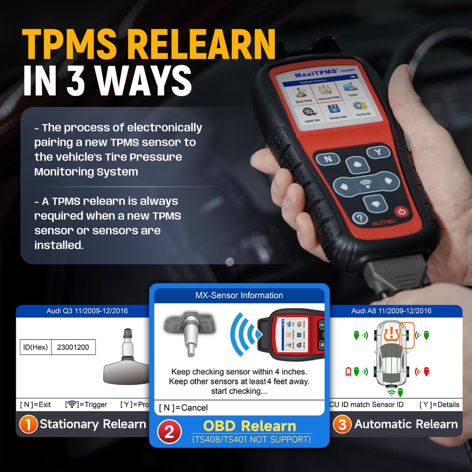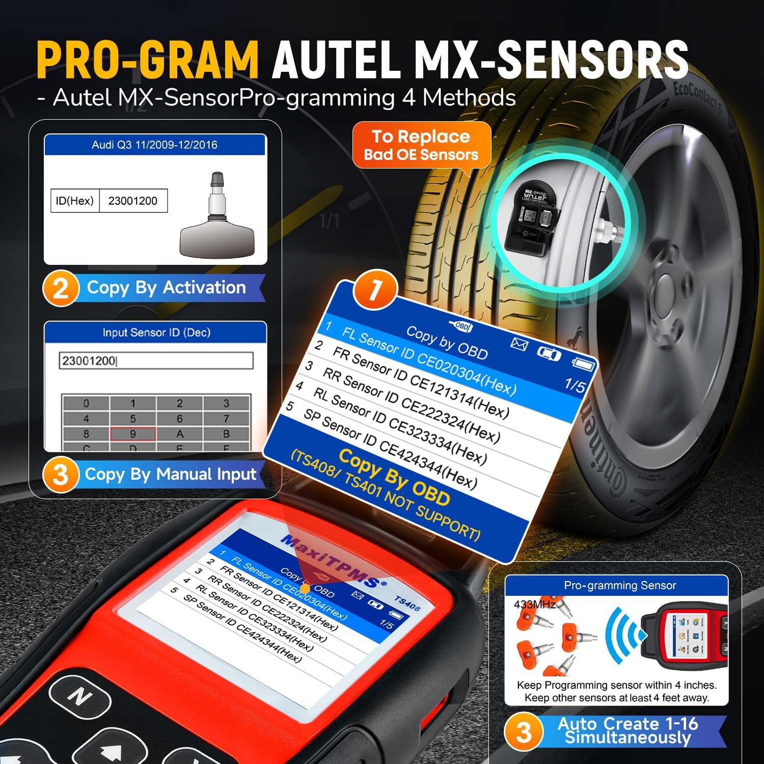 - 🥇【MX-SENSOREN AUF 4 ARTEN PROGRAMMIEREN】Das Autel TPMS-Programmiergerät TS508WF KIT unterstützt vier Möglichkeiten zur Programmierung von MX-Sensoren. ✅1) Kopieren durch OBD ✅2) Kopieren durch Aktivierung ✅3) Kopieren durch manuelle