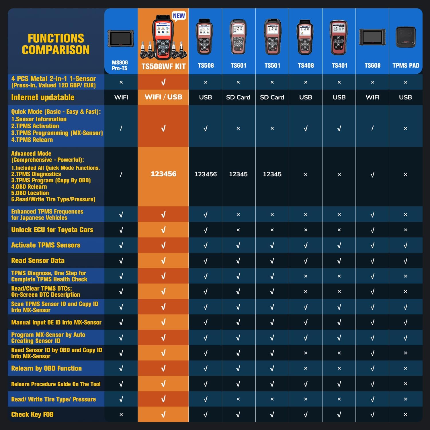 - 🥇【2024 NEUESTER TPMS SCANNER: TS508WF KIT】Upgrade von TS508K (TS508 KIT) TS601 TS501 TS408 TS401, Autel MaxiTPMS TS508WF KIT ist das erste WIFI-aktualisierte tragbare TPMS-Neulern/ Programmier/ Aktivierungstool: Unterstützt TPMS-Neulernen auf