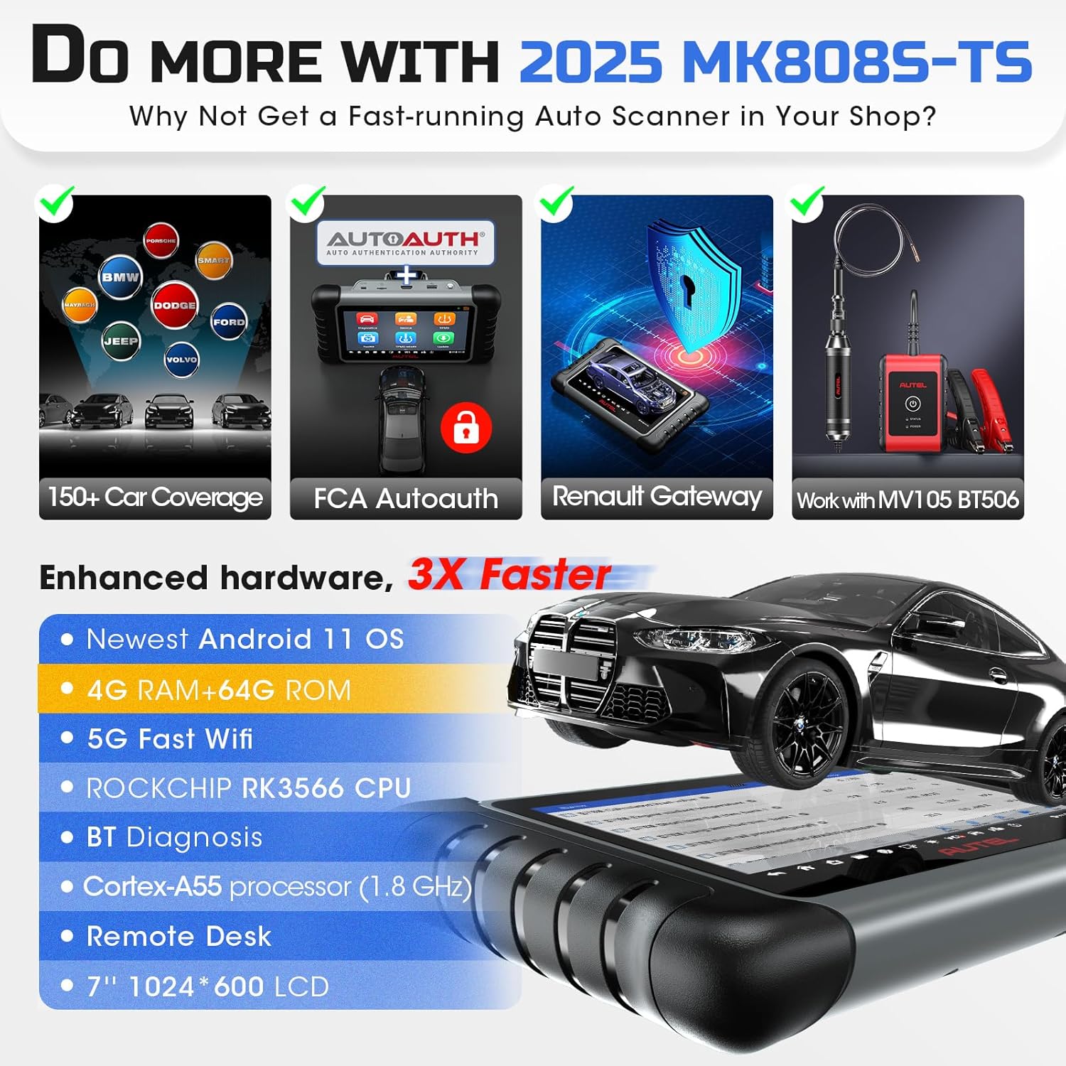 - 【TPMS-Funktionen】: Autel MK808S-TS wurde speziell entwickelt, um den kompletten TPMS-Service wie MaxiTPMS TS608 einschliesslich TPMS-Gesundheitsprüfung, Programmierung und Neuerlernen usw. zu bieten, um Technikern zu helfen, den fehlerhaften Sensor