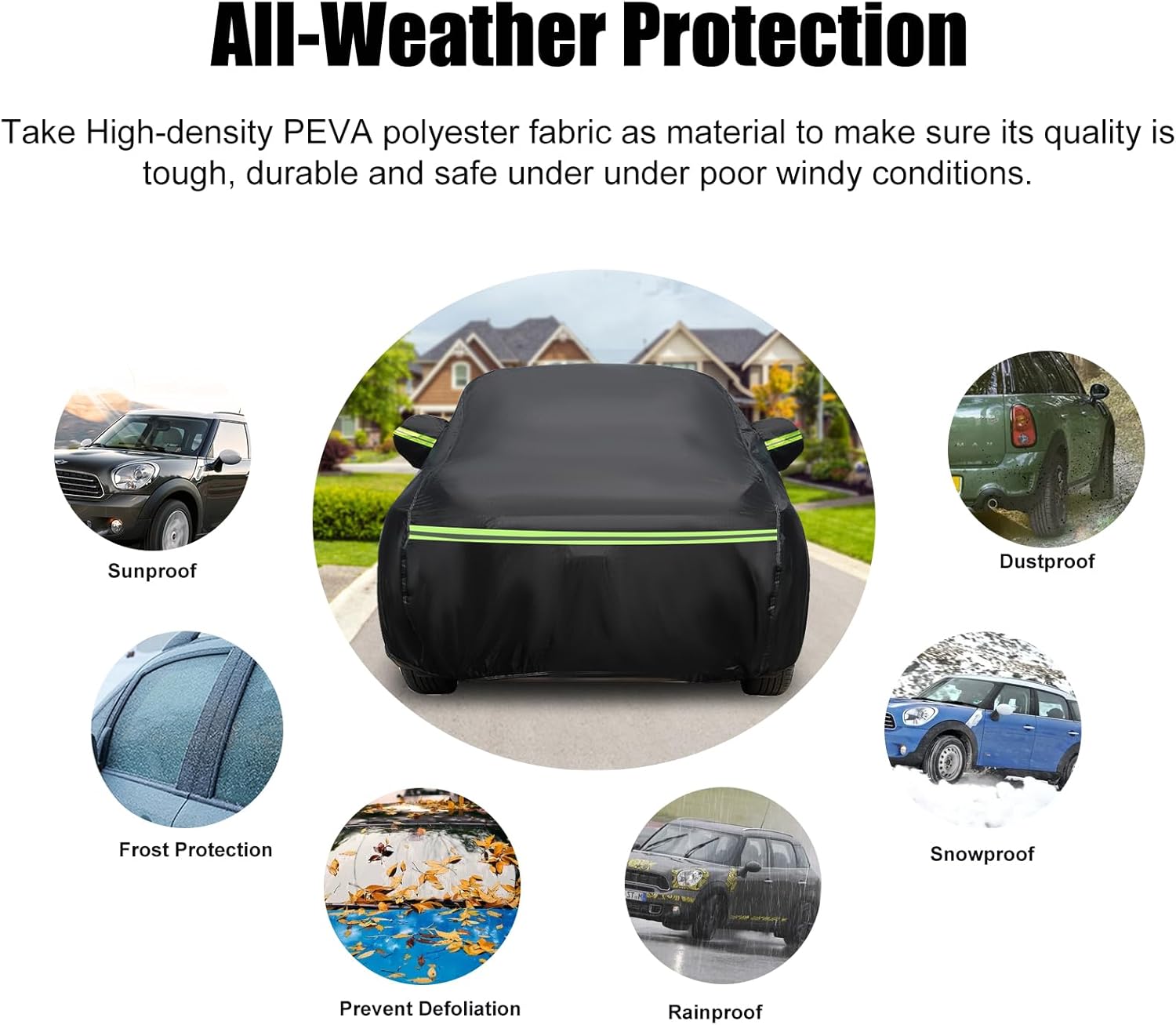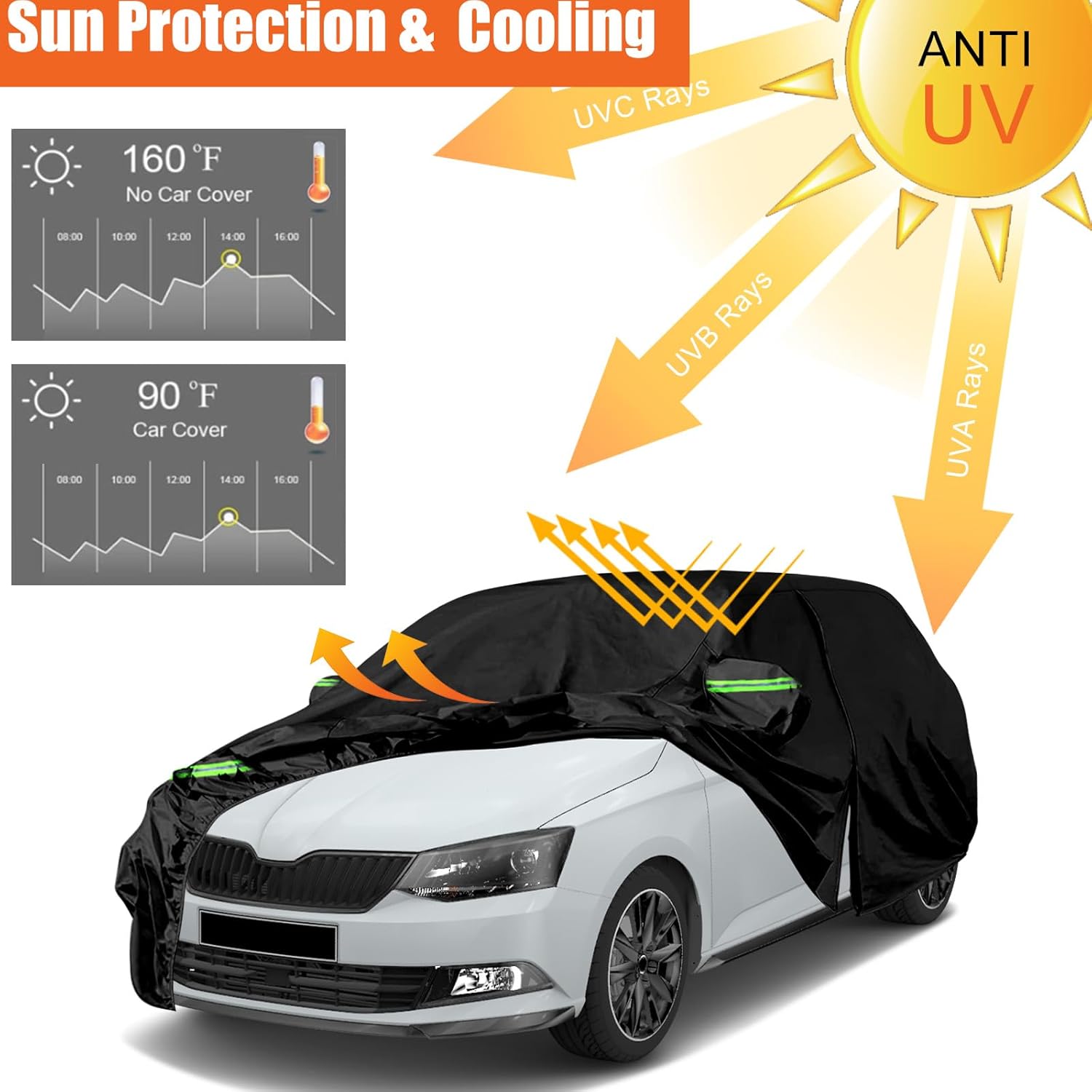 - Professionelles Design - Autoabdeckungen für Autos bei jedem Wetter wasserdicht A. Reissverschluss auf der Fahrerseite: Praktisch, um Dinge herauszuholen B: Lange fluoreszierende Lichtstreifen: Schützen Sie Ihr Auto nachts C. Grosse Spiegeltasche: