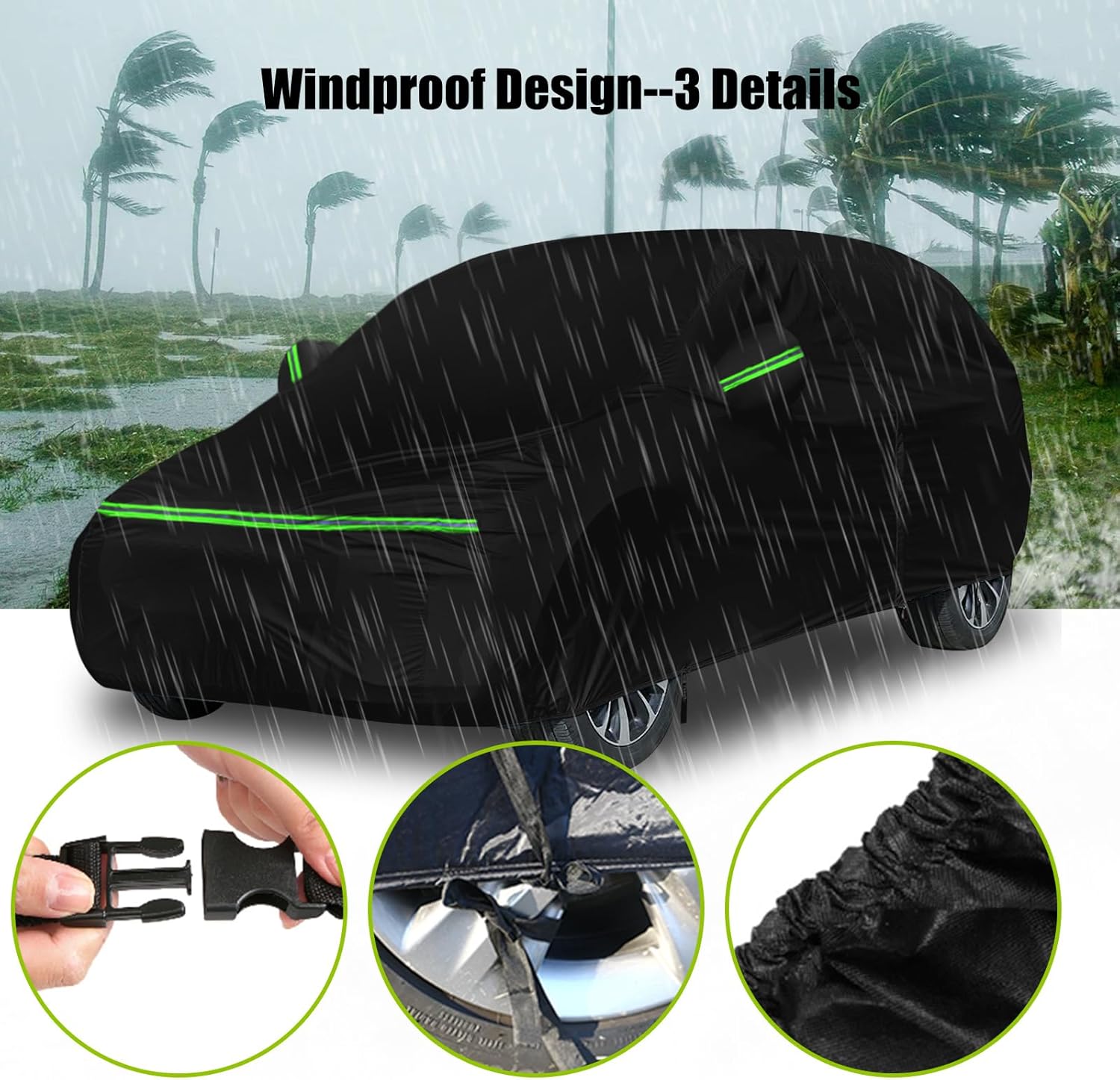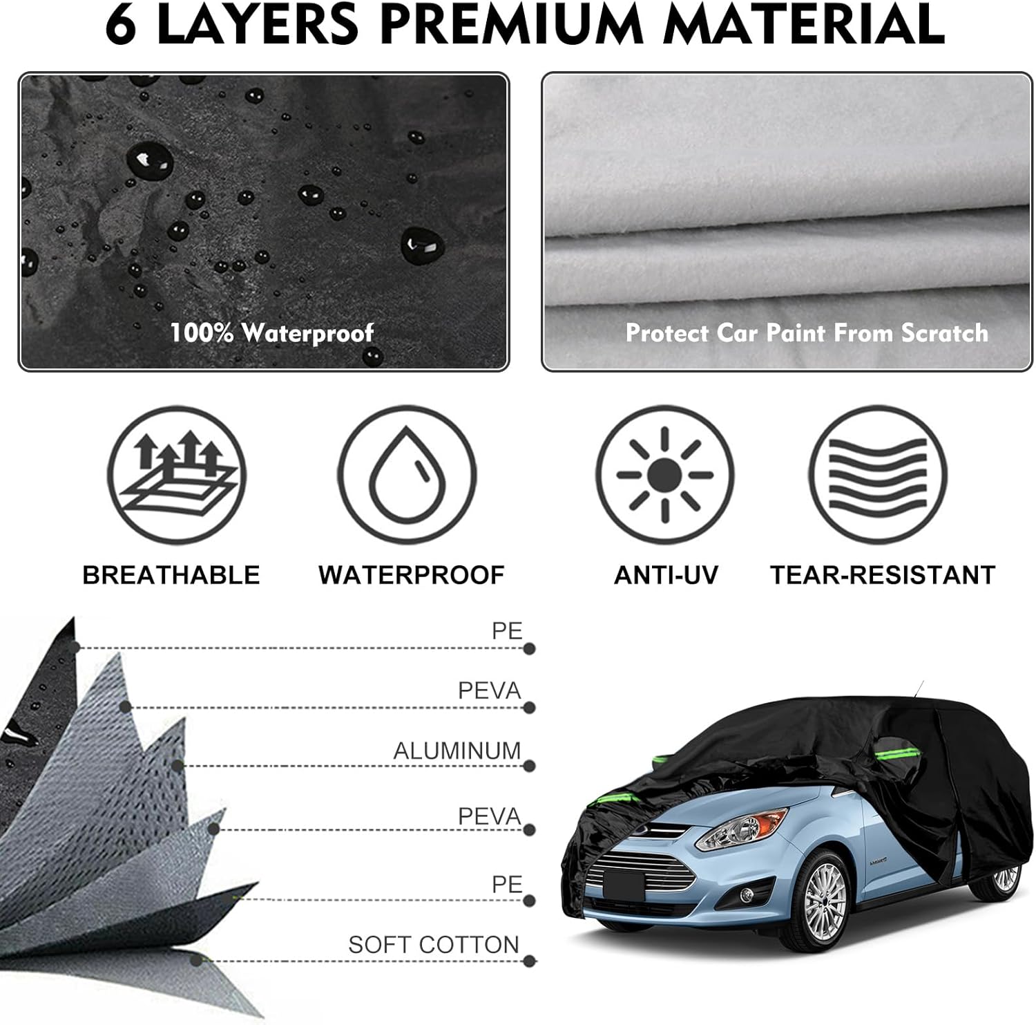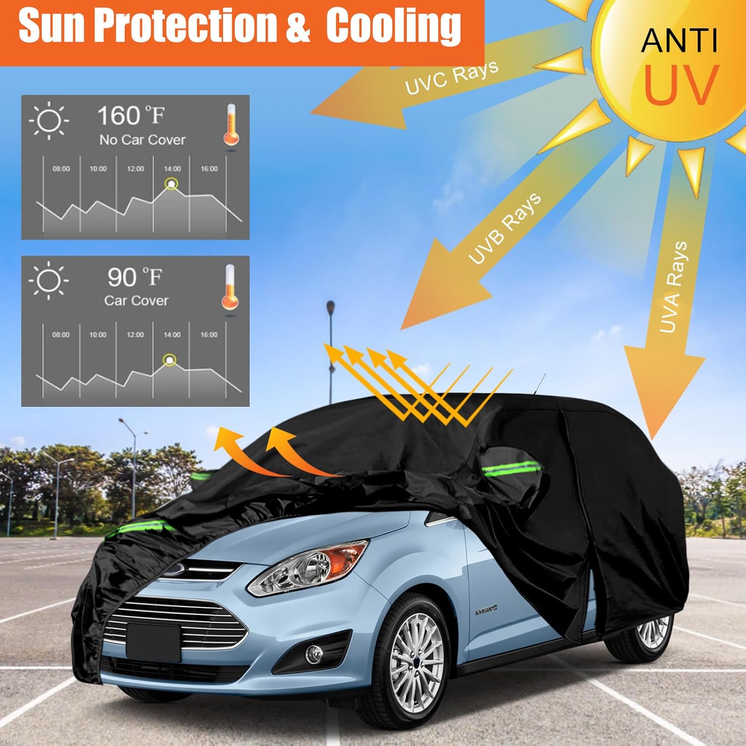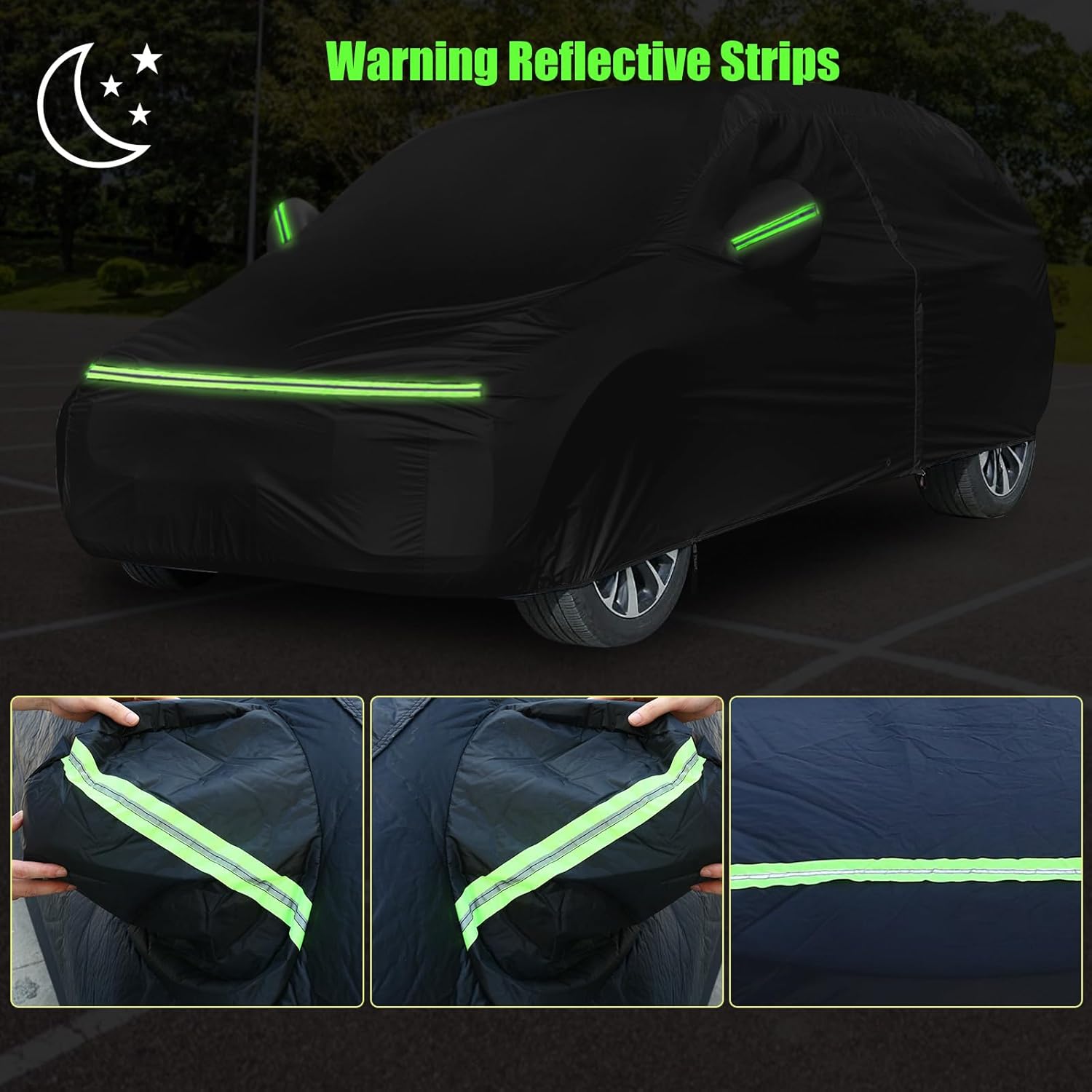- Professionelles Design - Autoabdeckungen für Autos bei jedem Wetter wasserdicht A. Reissverschluss auf der Fahrerseite: Praktisch, um Dinge herauszuholen B: Lange fluoreszierende Lichtstreifen: Schützen Sie Ihr Auto nachts C. Grosse Spiegeltasche: