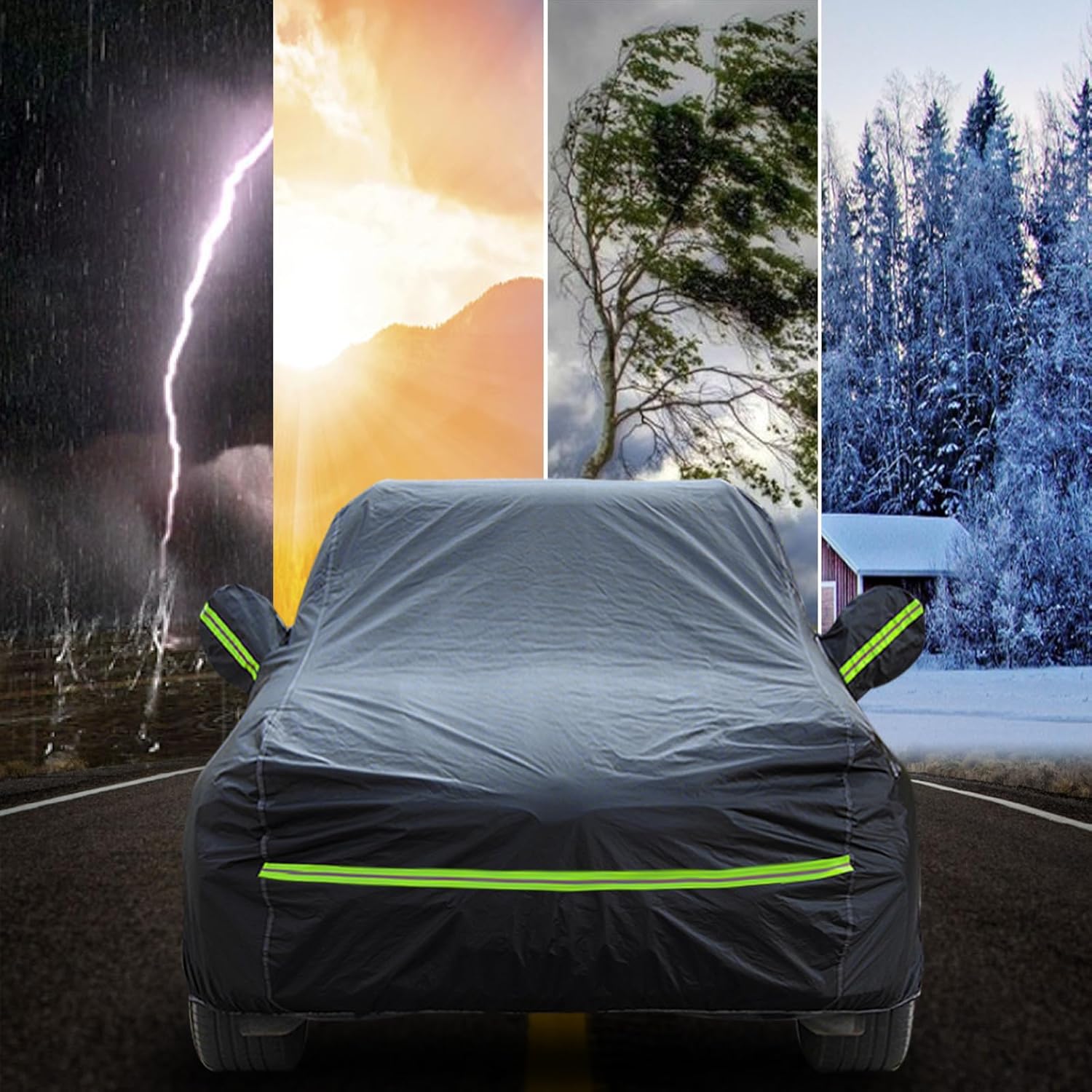 - Allwetterschutz - diese Autoabdeckung ist ideal für alle vier Jahreszeiten und Wetter; zum Schutz bei jedem Wetter. Sie hält Wind, Regen, Schnee und Eis stand. Frühling - Blätter, Staub, Kratzer. Sommer - Aluminium hat eine hohe Reflexionsrate