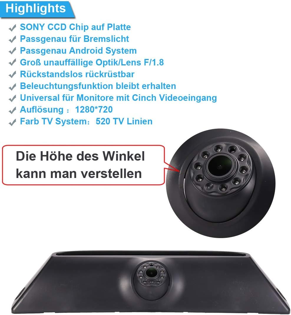 • Einfach zu installieren, müssen Sie nur das Original Bremslicht entfernen und das Kameragehäuse in den Punkt einfügen.Installation ohne bohren oder abdichten!