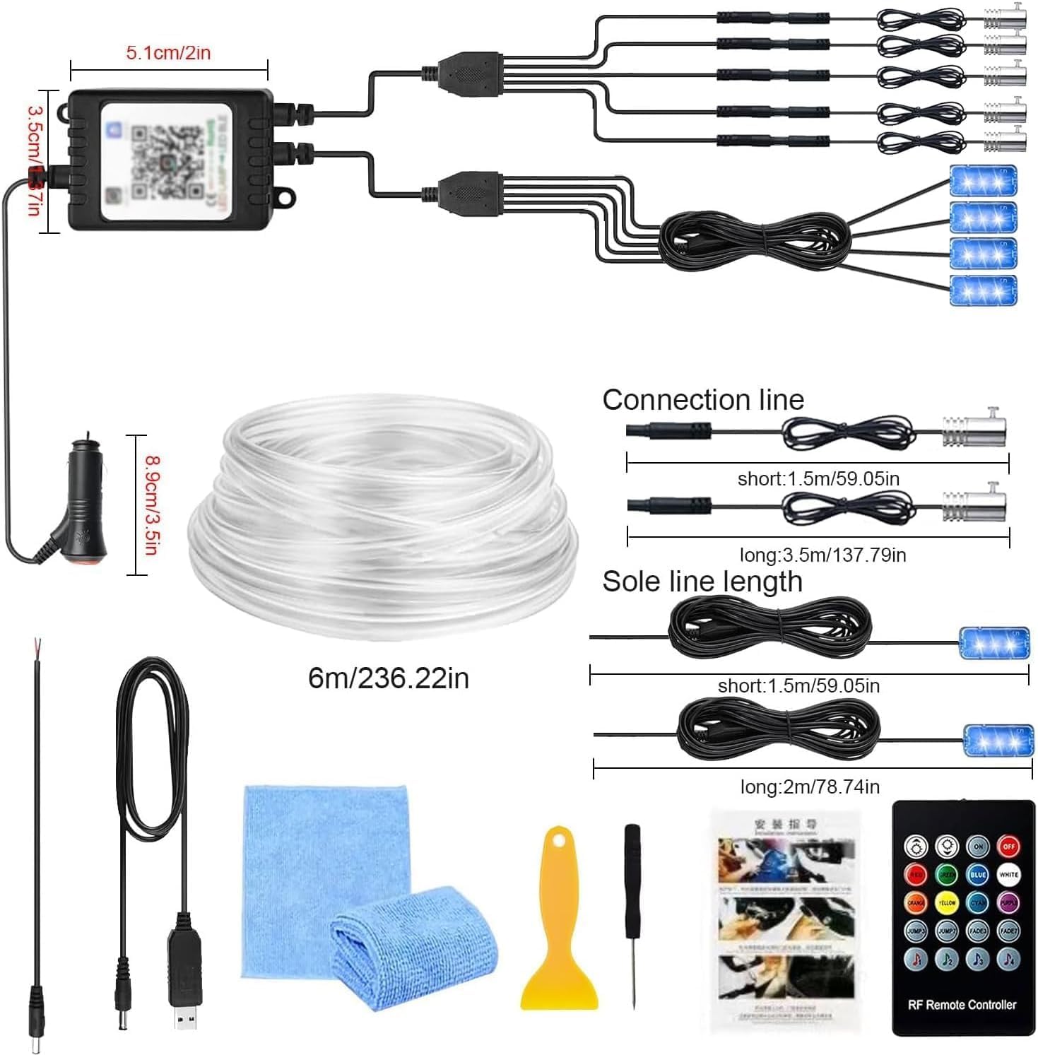 - RGB APP Control 64-Farben-Glasfaser-Innenraumbeleuchtung:Mit der Bluetooth-Verbindung können Sie mit 16 Millionen Farben spielen und den Modus für mehrere Szenen über die App einstellen. Weitere Funktionen wie Blinken, Timer-Einstellung.