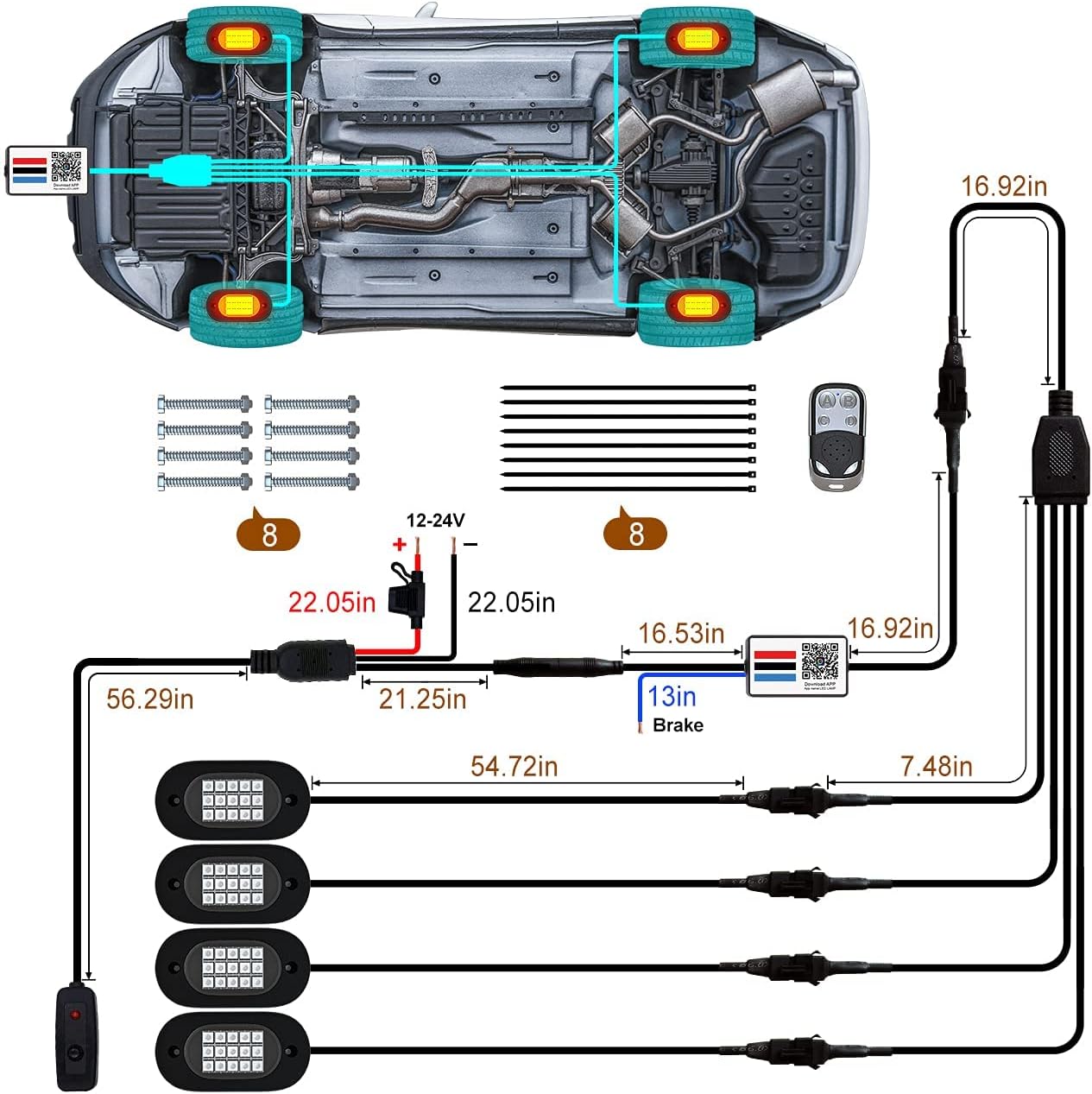 - Neueste Design- und Multi-Control-RGB-Rock Lights-Kits mit Telefon-App-Steuerung / 4-Tasten-RF-Fernbedienung. Sie können beliebige Farben auswählen, die sich ändernde Geschwindigkeit, Helligkeit und stroboskopische Geschwindigkeitsregelung anpassen.