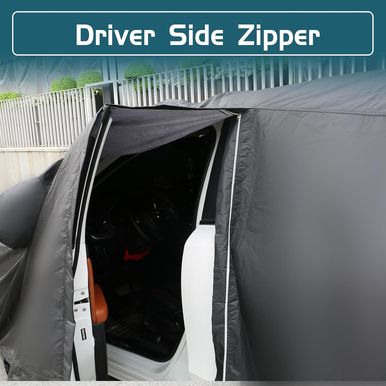 - Intelligentes Design: Der Reissverschluss erleichtert die Montage und ermöglicht den Zugang zur Fahrer- und Beifahrertür. Die reflektierenden Streifen auf der Autoabdeckung können es den Menschen ermöglichen, auch im Dunkeln zu erkennen, wo Ihr