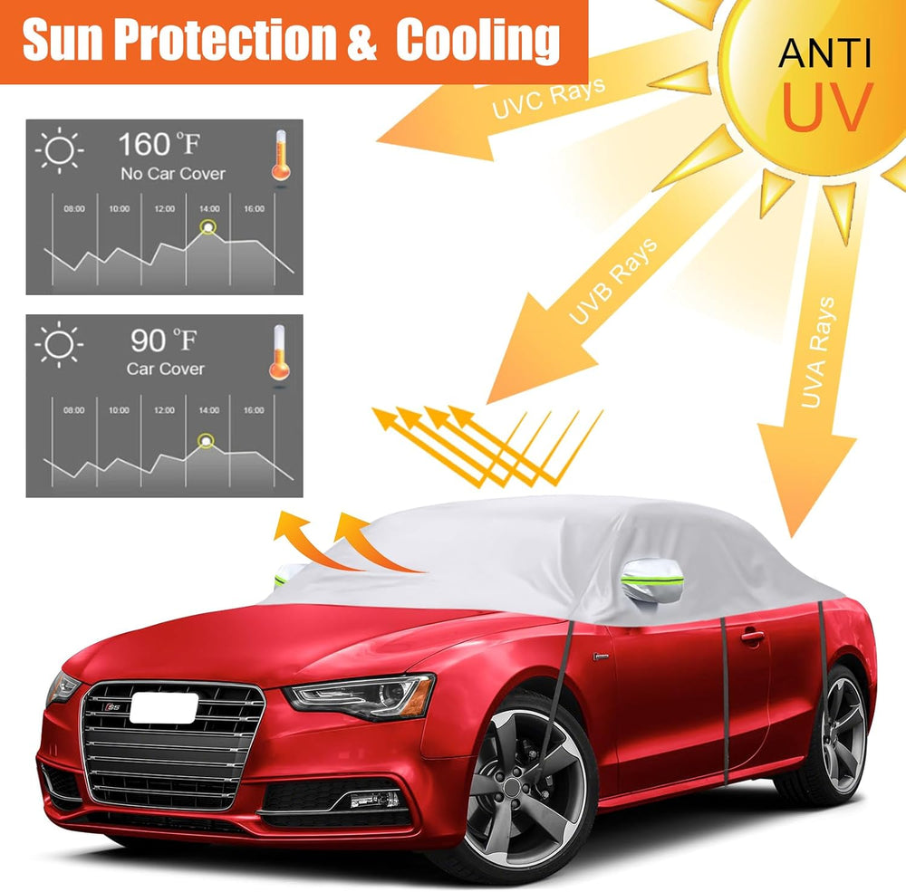 - Rundumschutz: Deckt Windschutzscheibe, Seiten-/Heckscheiben, Rückspiegel ab und schützt Ihr Auto vor Schnee, Frost, Vogelkot, UV-Strahlen, Regen, Staub usw. Ob heisser Sommer, rote Blätter im Herbst oder starker Schneefall im Winter, die