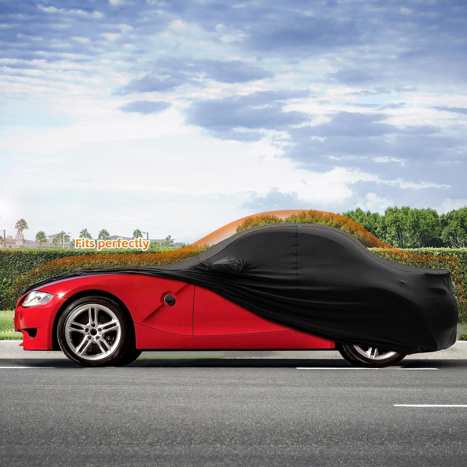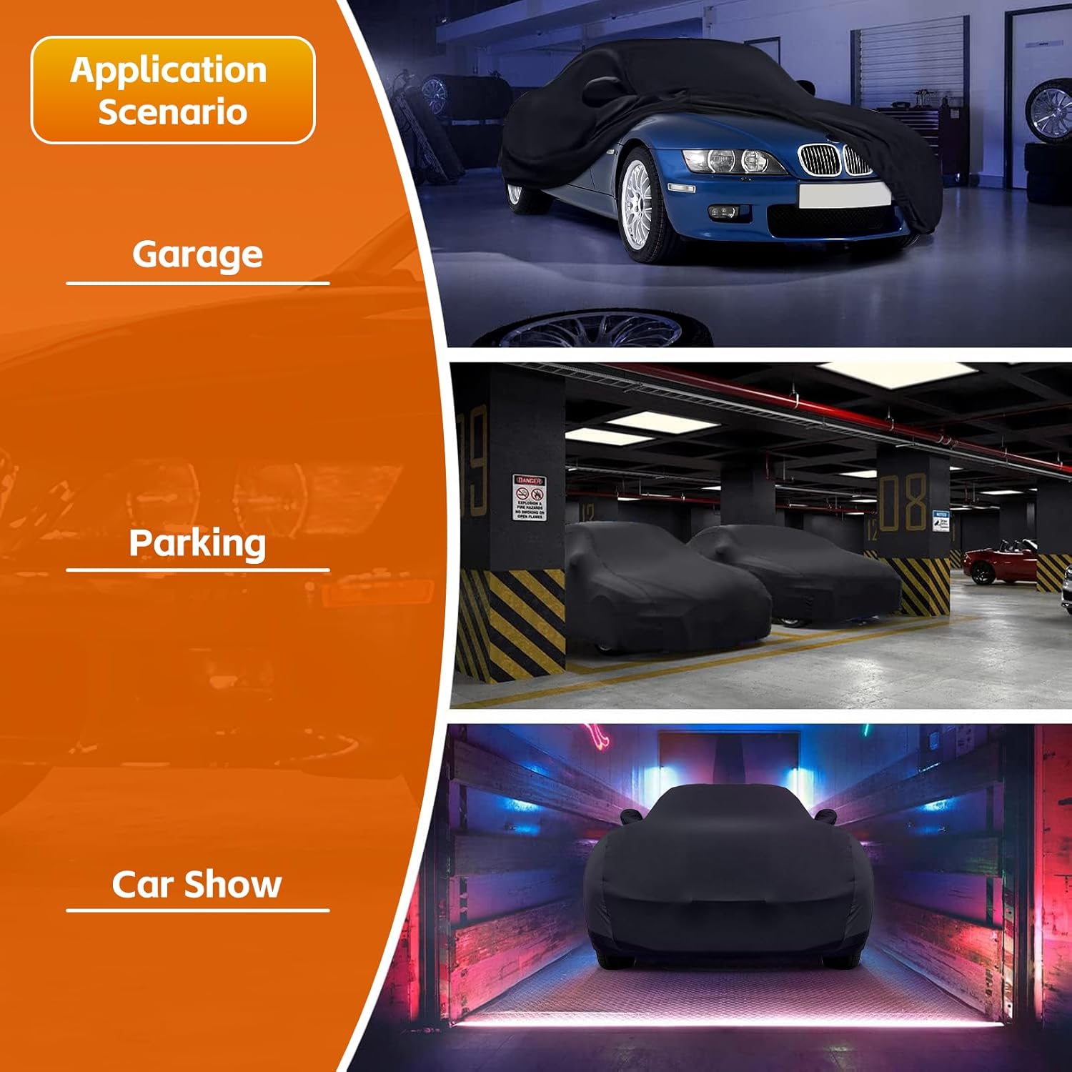 - Qualität Material: Diese Indoor Autoabdeckung aus soft Stretch Satin, sehr weich und bequem wie Samt, so dass Sie sich keine Sorgen über Kratzer in Ihrem Auto machen müssen.