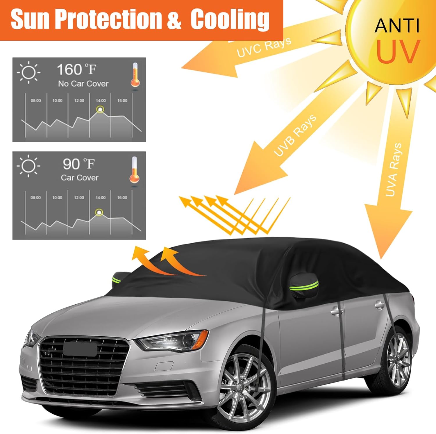 - Rundumschutz: Deckt Windschutzscheibe, Seiten-/Heckscheiben, Rückspiegel ab und schützt Ihr Auto vor Schnee, Frost, Vogelkot, UV-Strahlen, Regen, Staub usw. Ob heisser Sommer, rote Blätter im Herbst oder starker Schneefall im Winter, die