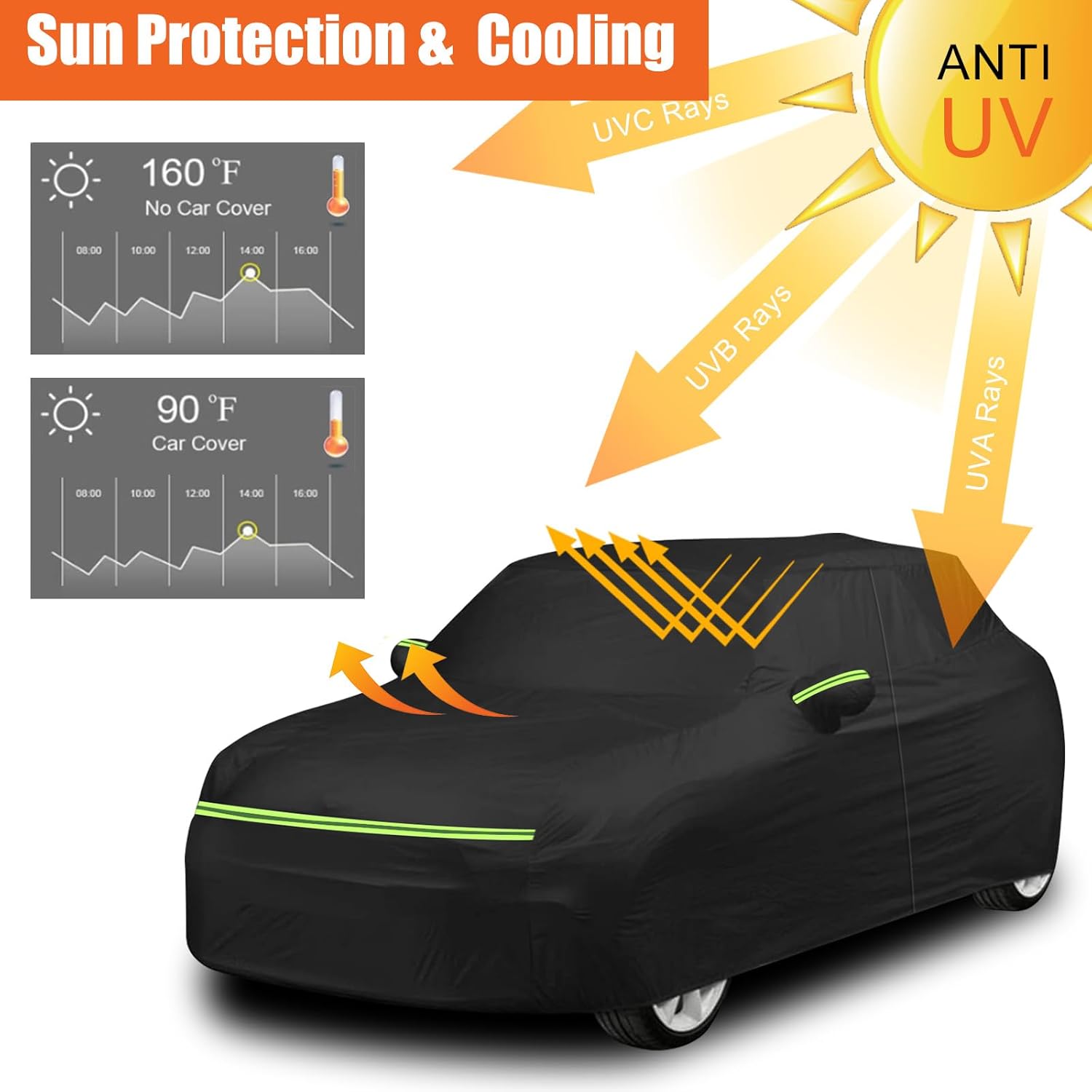 - Exzellenter Kundenservice: Die elastischen Kanten der Autoabdeckung passen perfekt zu Ihrem Auto, und der untere Riemen und die Windschutzscheibe verfügen über eine doppelte Fixierung, um Ihr Auto auch an windigen Tagen an Ort und Stelle zu halten. Die