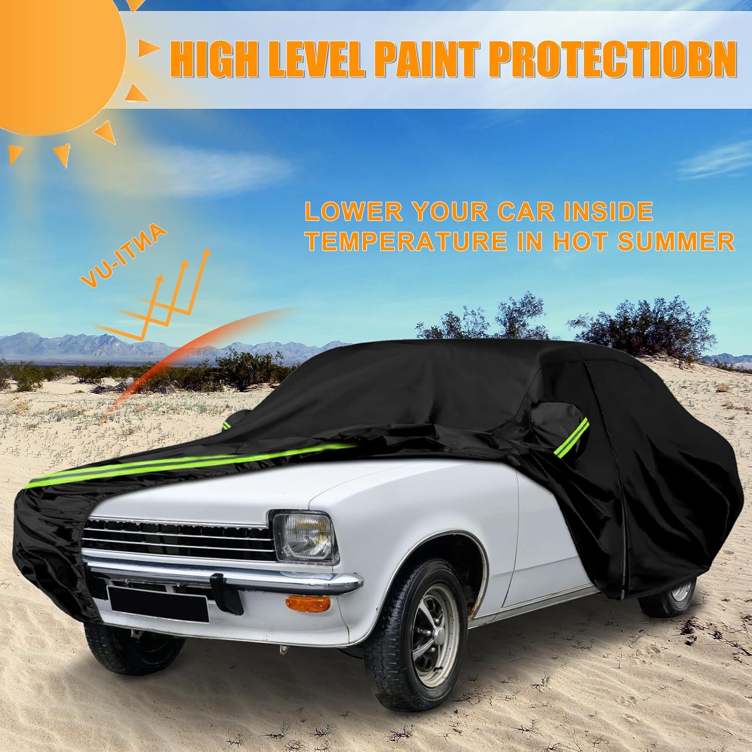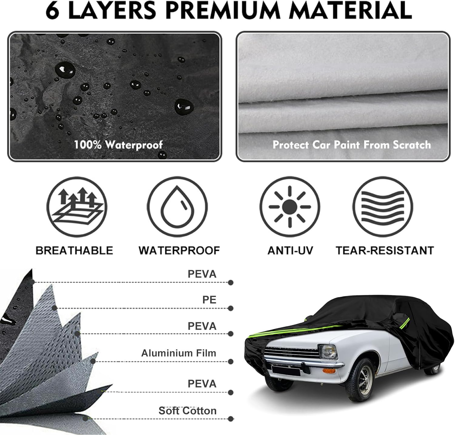 - Brandneues Upgrade: Die Autoabdeckung besteht aus schwarzer Spunlace-Baumwolle, die sowohl wasserdicht als auch wärmend wirkt, den Autolack schützt, Kälte im Winter verhindert, das Fensterglas vor dem Einfrieren schützt und die heisse Autozeit des