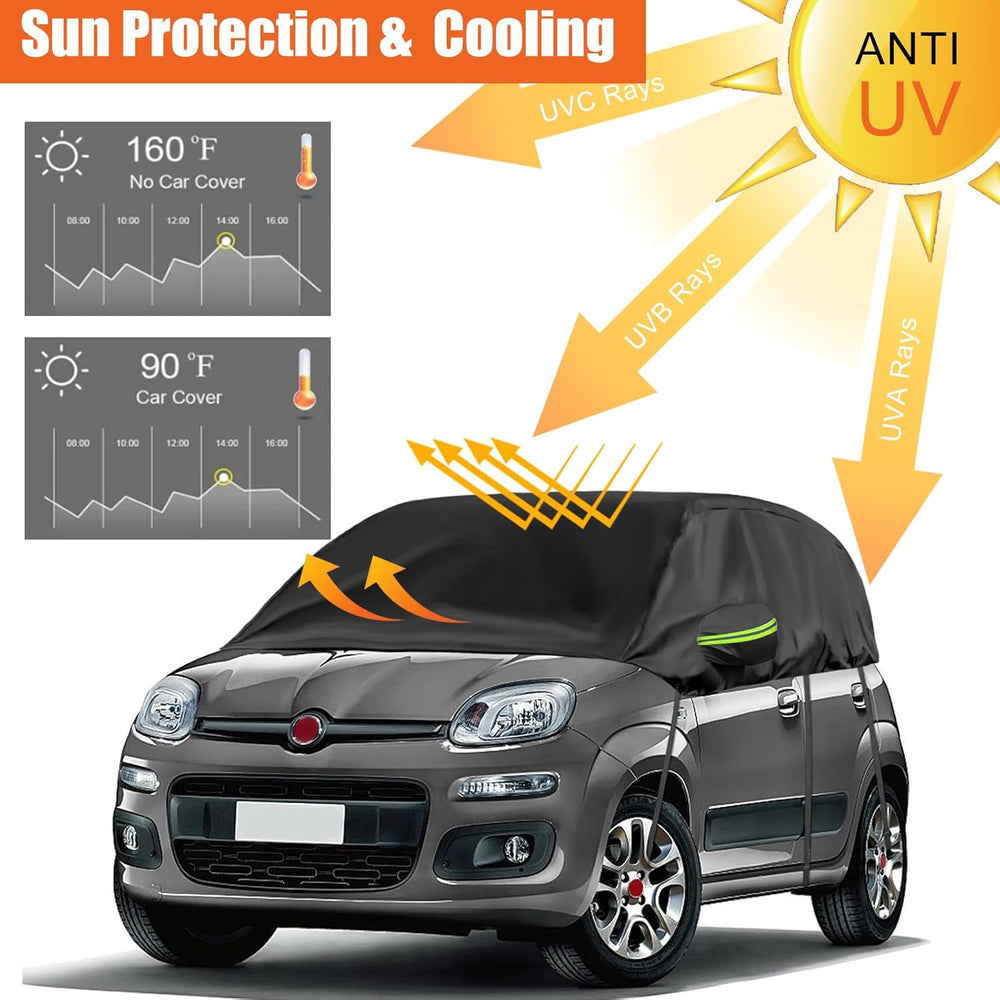 - Rundumschutz: Deckt Windschutzscheibe, Seiten-/Heckscheiben, Rückspiegel ab und schützt Ihr Auto vor Schnee, Frost, Vogelkot, UV-Strahlen, Regen, Staub usw. Ob heisser Sommer, rote Blätter im Herbst oder starker Schneefall im Winter, die
