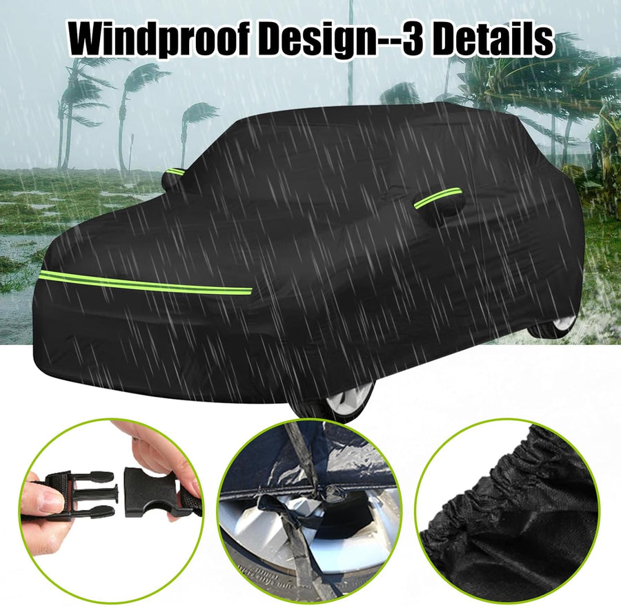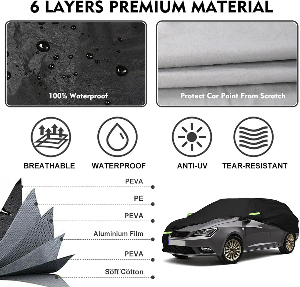 - Exzellenter Kundenservice: Die elastischen Kanten der Autoabdeckung passen perfekt zu Ihrem Auto, und der untere Riemen und die Windschutzscheibe verfügen über eine doppelte Fixierung, um Ihr Auto auch an windigen Tagen an Ort und Stelle zu halten. Die