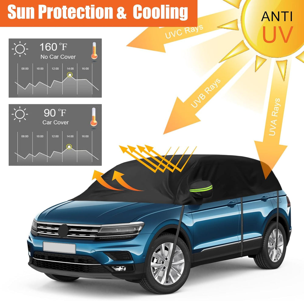 - Rundumschutz: Deckt Windschutzscheibe, Seiten-/Heckscheiben, Rückspiegel ab und schützt Ihr Auto vor Schnee, Frost, Vogelkot, UV-Strahlen, Regen, Staub usw. Ob heisser Sommer, rote Blätter im Herbst oder starker Schneefall im Winter, die