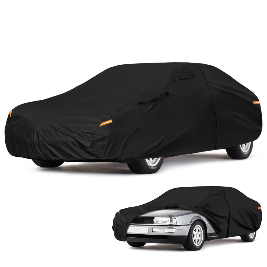 - Hochwertiges Outdoor Autoabdeckung: Äusserste ist aus Multilayers Polyester und Pu -Verbundmaterial, Plus wasserdichtes Schicht Polyethylen, um es zu 100% wasserdicht zu gewährleisten, und kann eine lange Sommersonne und Winterregen/Schnee standhalten.