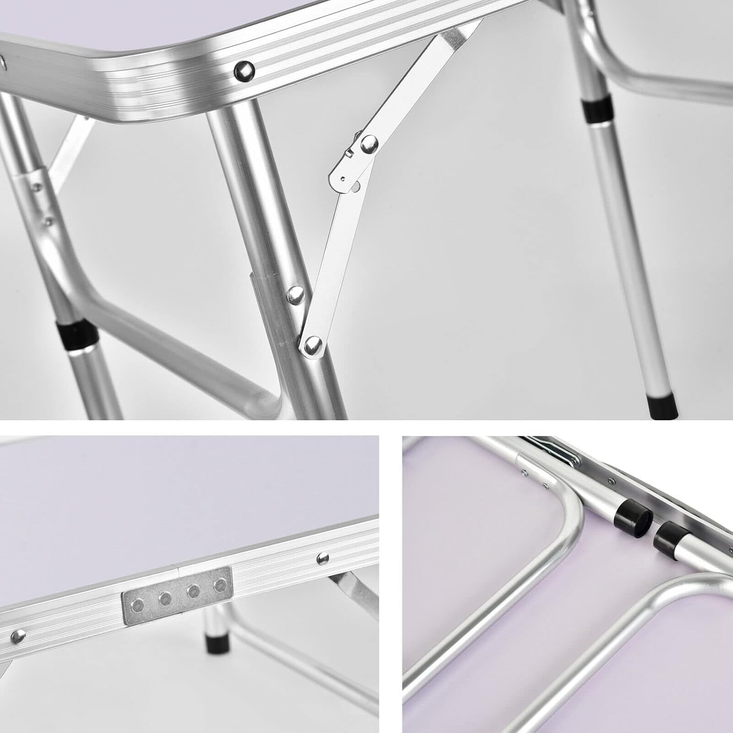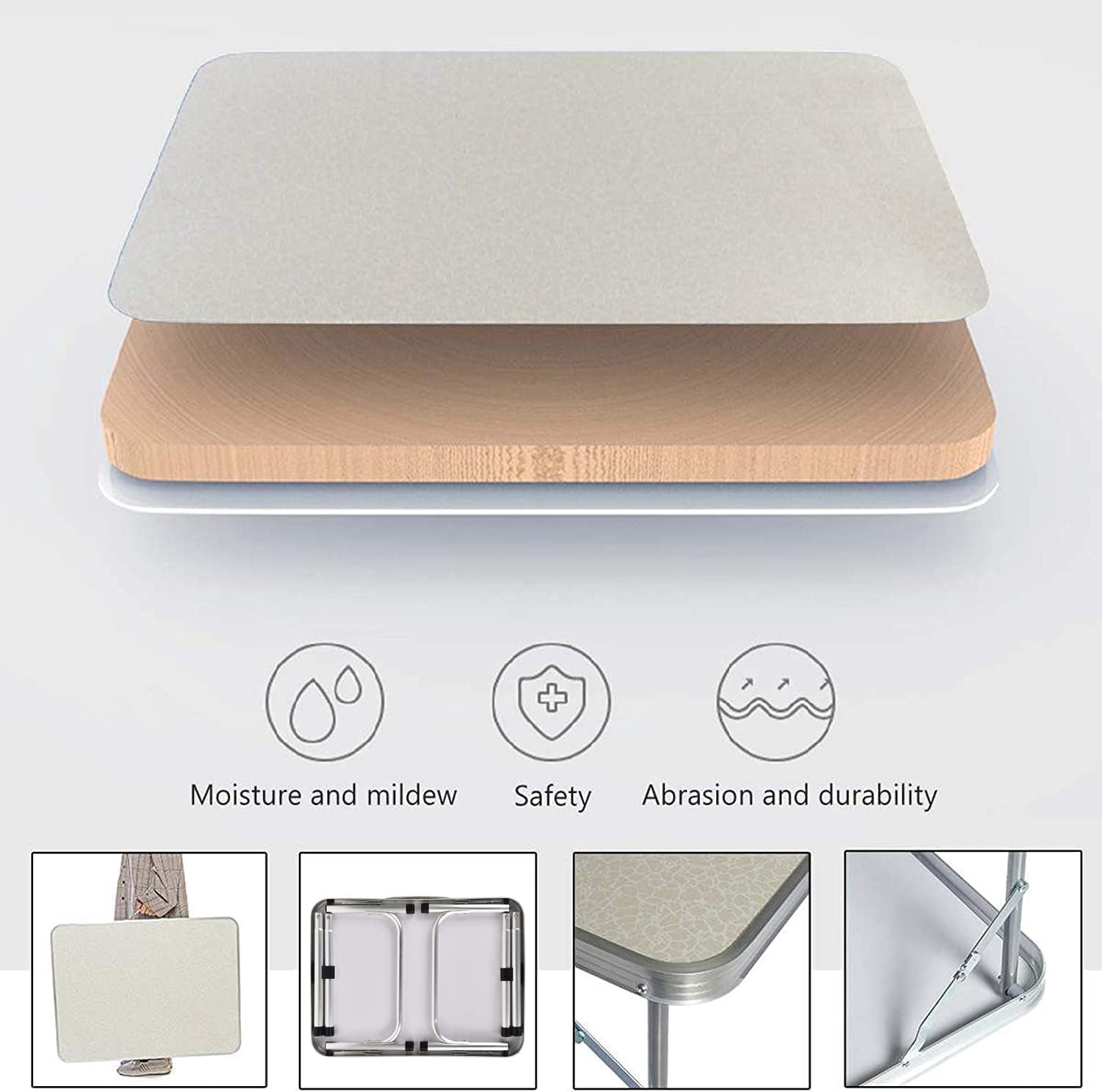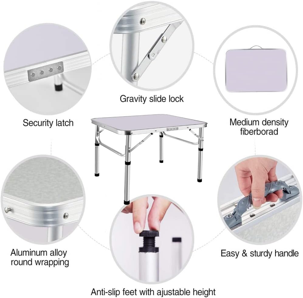 - Stabil und stabil: aus hochdichten MDF-Platten mit Aluminiumrahmen gefertigt. Sorgt dafür, dass der Aluminium-Campingtisch stabil genug im Gebrauch ist. Mit klappbaren Beinen, die für zusätzliche Stabilität arretiert werden können