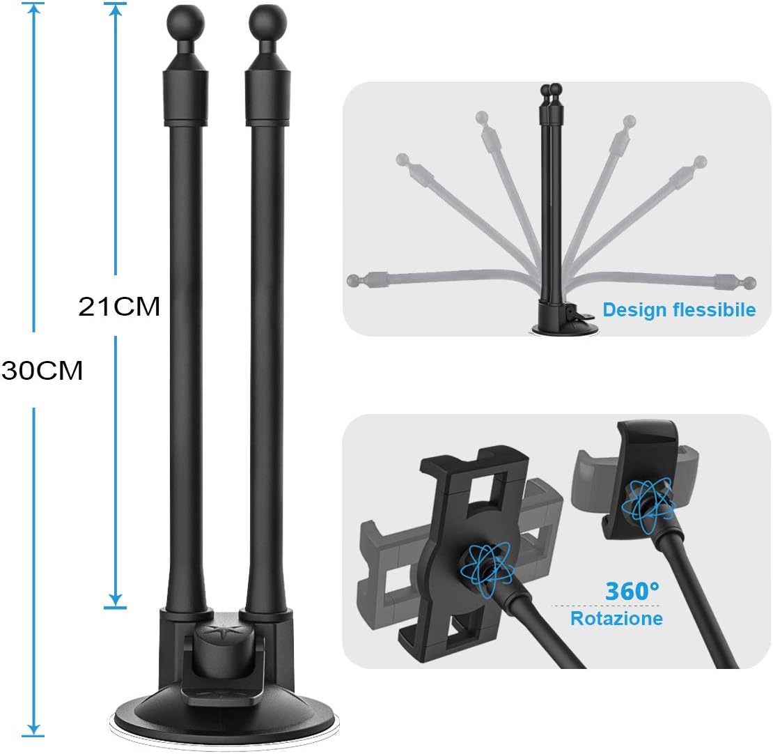 - 【Easy to Install】Installation des autotelefonhalters ist sehr einfach ohne die verwendung von werkzeugen, die Hände erfordern. duale autotelefonhalterung entworfen mit zwei langen armen (und flexibler länge von 21cm). Sie können die Höhe und den