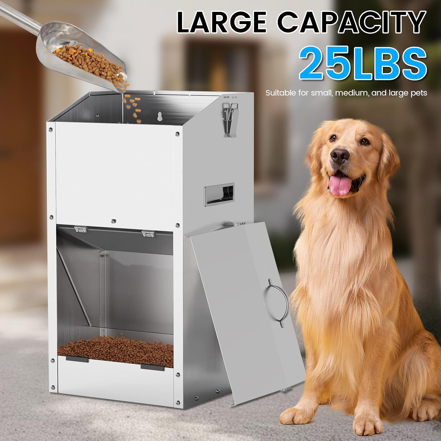- 25LBS Kapazität: Metall Hundefutter Schwerkraft Feeder, entworfen für grosse Hunde, 25 lbs grosse Kapazität Hundefutter, keine Notwendigkeit, Nahrung häufig jeden Tag hinzuzufügen, lange Zeit, um die Futterbedürfnisse des Hundes zu erfüllen, so