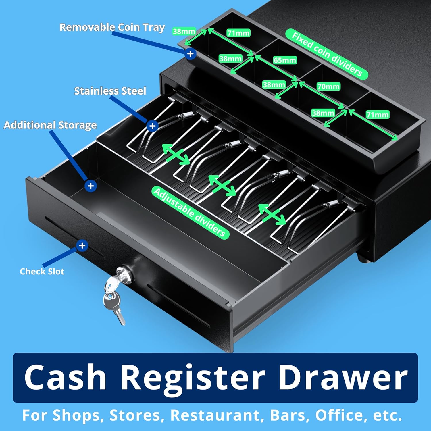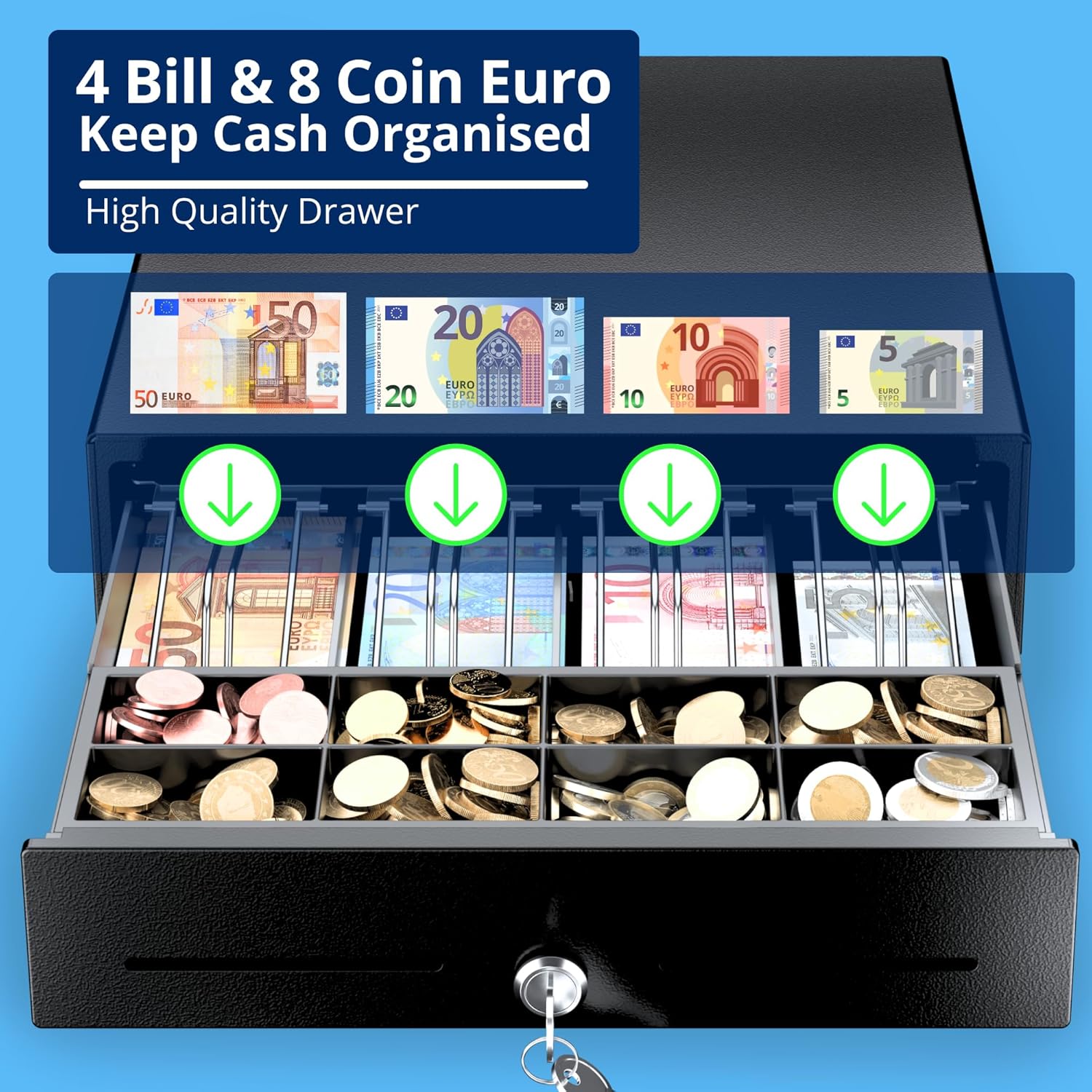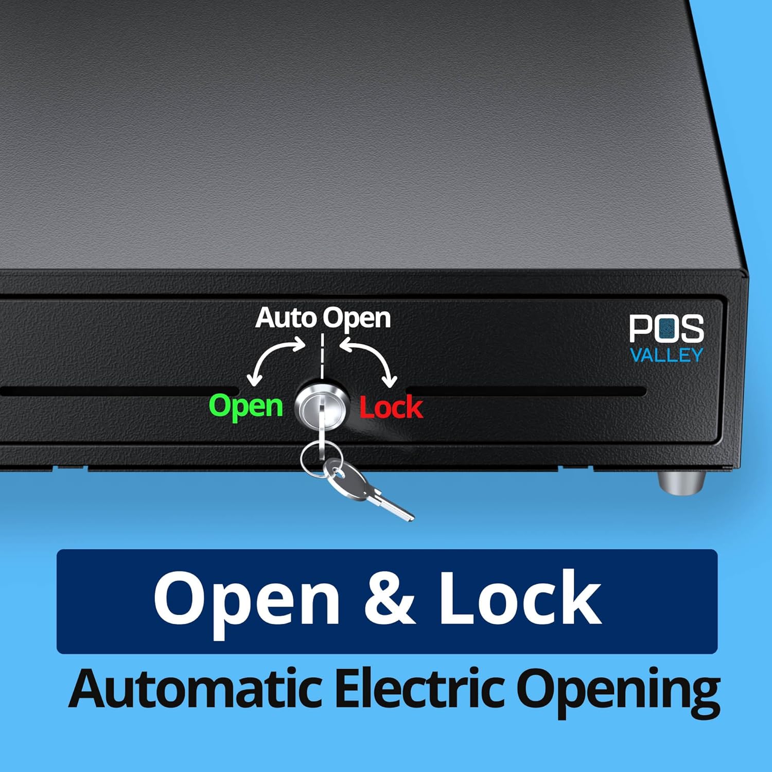 - Universelle Kompatibilität: RJ11/RJ12-Anschluss für Drucker und POS-Systeme. Kabel für automatisches Öffnen/Schliessen enthalten.
