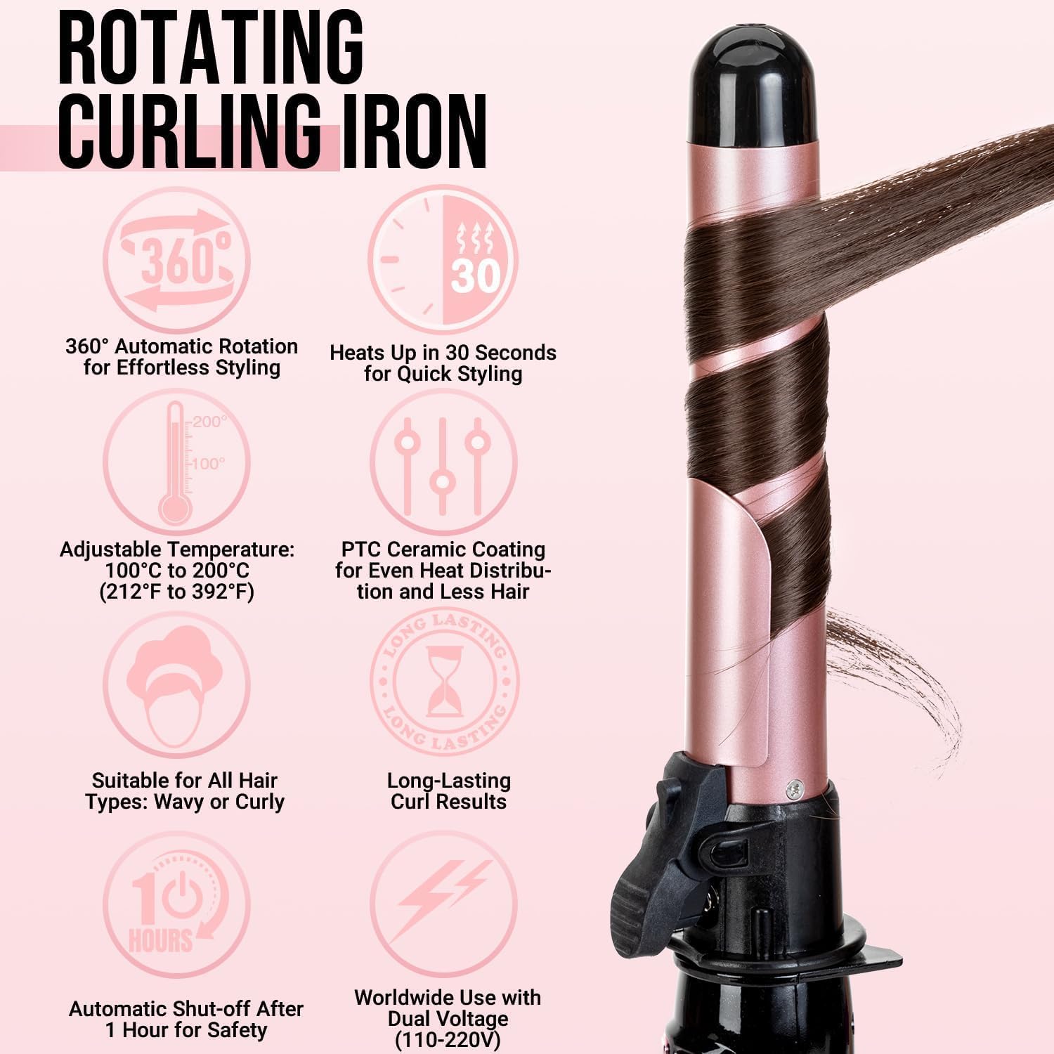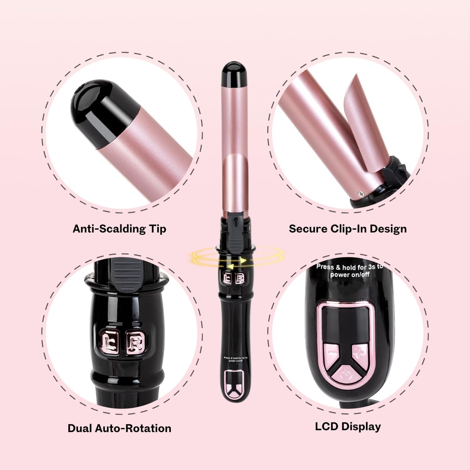 - đIntelligente automatische Lockenzange â Verabschieden Sie sich vom manuellen Drehen und Wickeln Sobald Sie Ihr Haar im Lockenwickler haben, drĂŒcken Sie einfach die Richtungstaste und der Zauberstab wickelt und lockt es automatisch fĂŒr Sie,