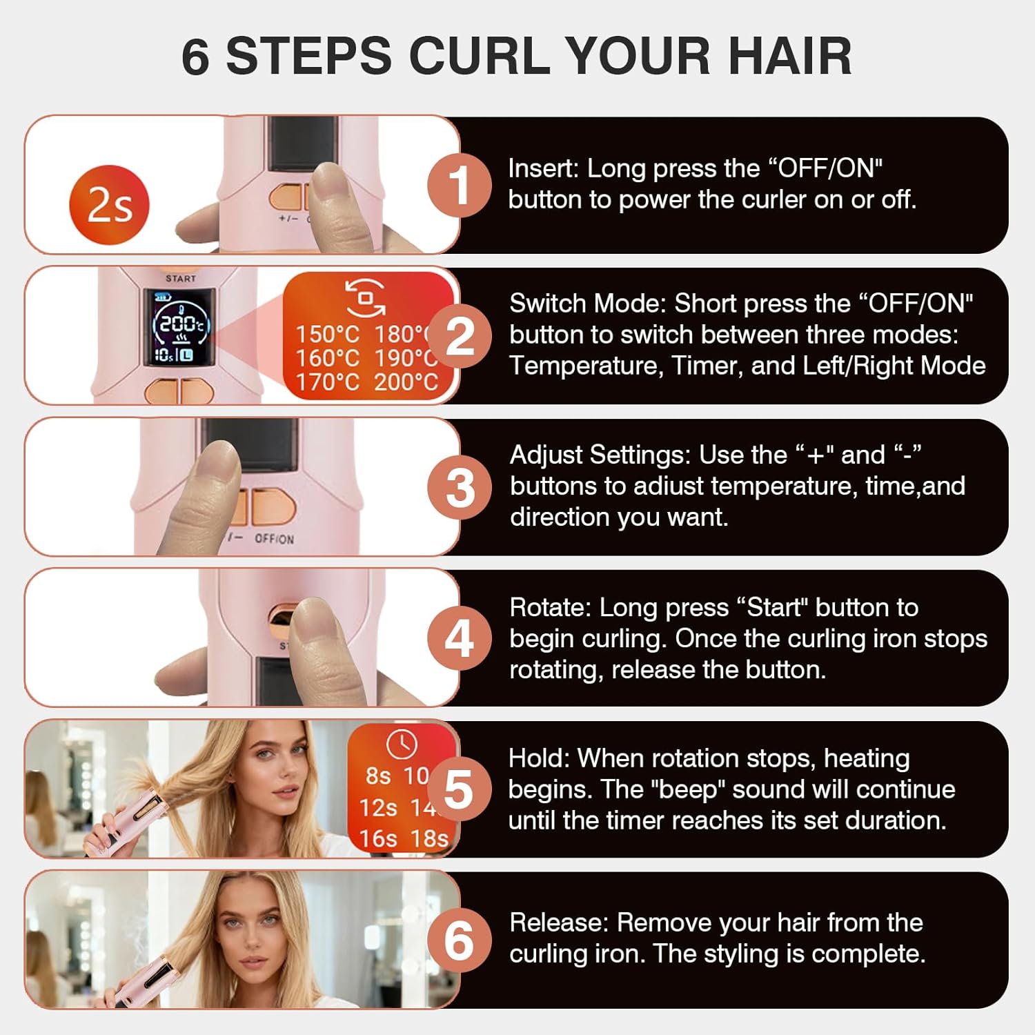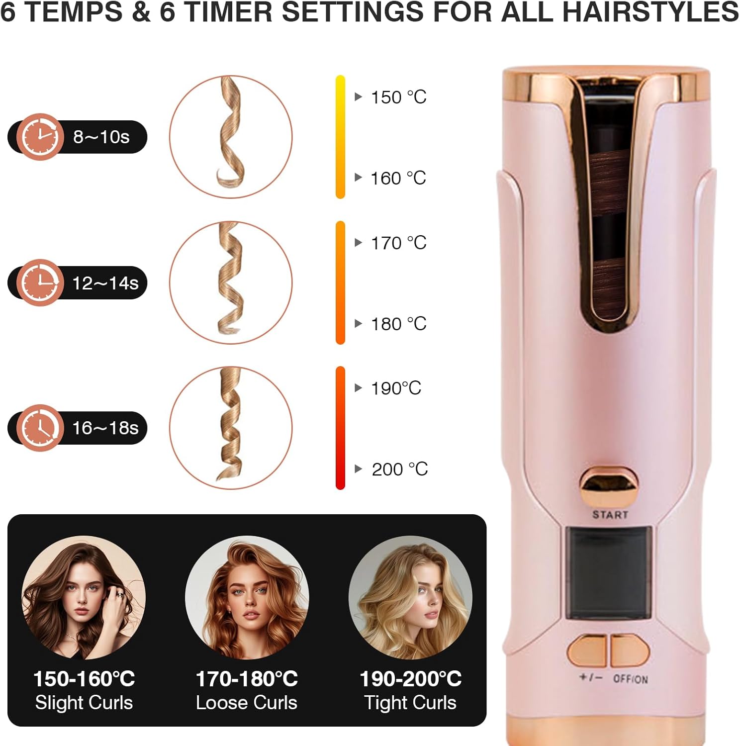 - 6 Temperatur & 6 Zeiteinstellungen: Der automatische Lockenstab verfügt über 6 einstellbare Temperaturen (150–200 °C / 300–390 °F), 6 Timereinstellungen (8–18 s). Sie können die Temperatur wählen, die zu Ihrem Haar passt. Sie können auch die