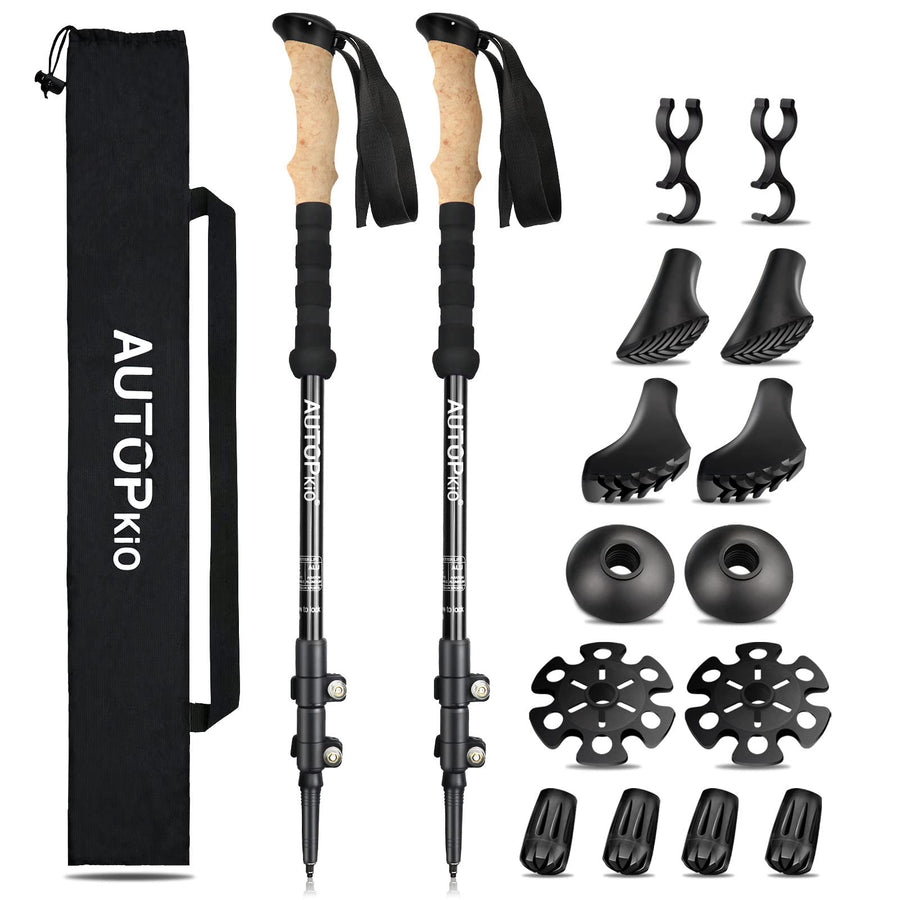 - 【Luftfahrt Klasse Aluminium】 AUTOPkio Trekkingstöcke bestehen aus ultraleichtem Flugzeugaluminium, das robuster und langlebiger als andere Materialien ist. Korrosionsbeständig, druck- und stossfest. Ultraleichter Trekkingstock ist nur 280 g für