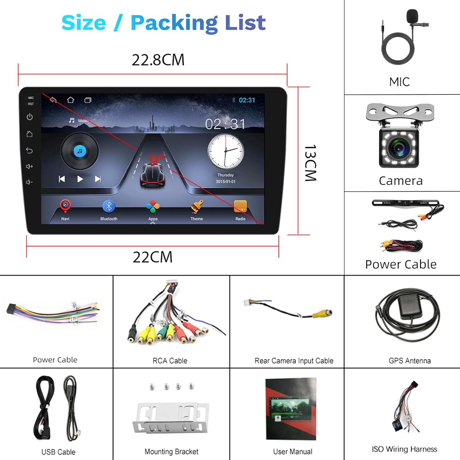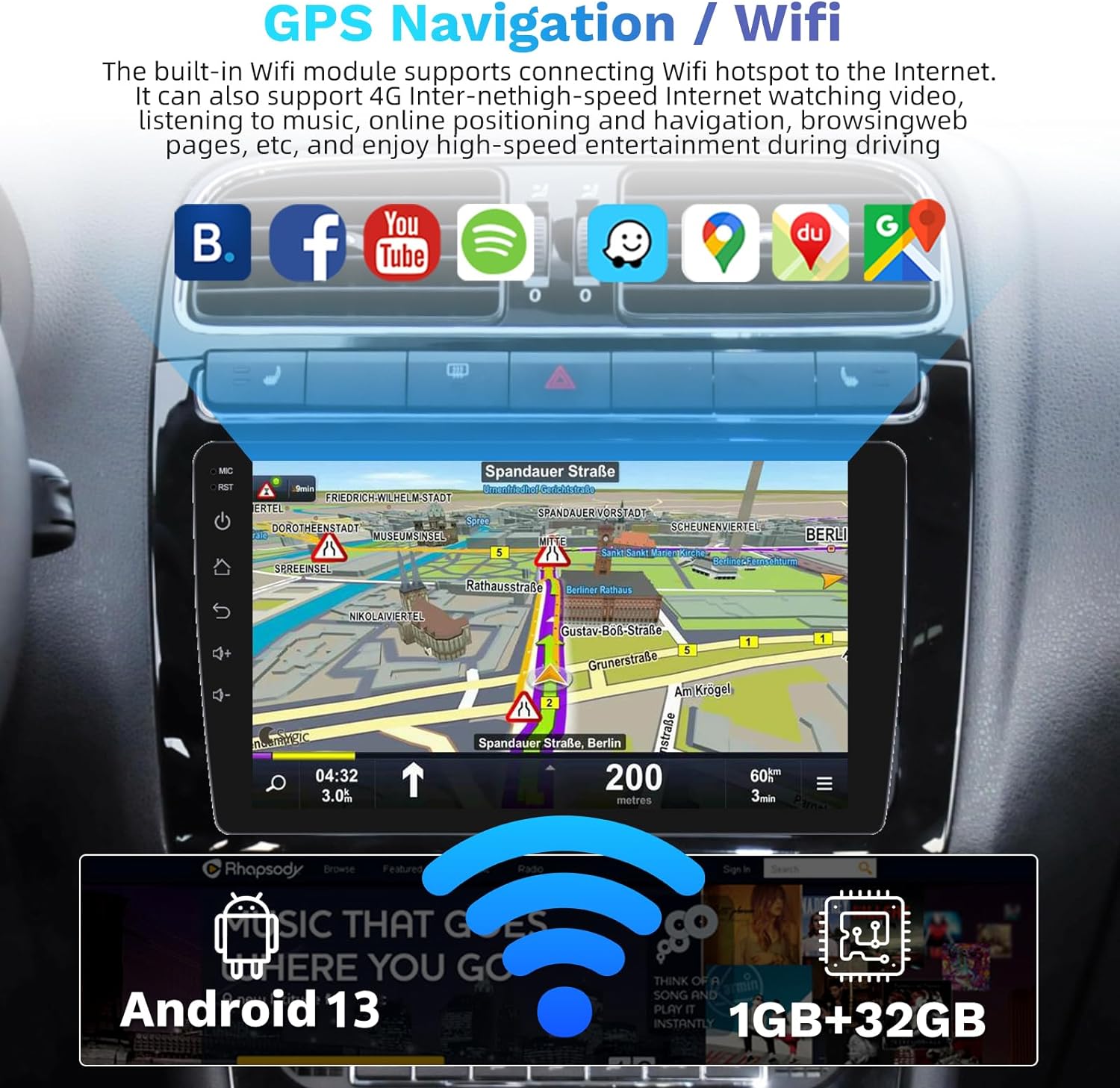 - 【Hardware und System】Android 13+WiFi+Bluetooth+FM Radio+1GB RAM/ 32GB ROM+GPS Receiver+Rückfahrkamera (im Lieferumfang enthalten). 9" IPS Touchscreen mit 1024*600 hoher Auflösung. Tiefgreifende Anpassungen und ein schlankes System funktionieren