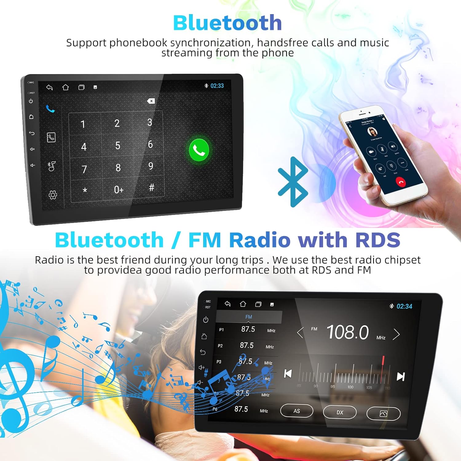 - 【Bluetooth & Stereo Sound System】Integriertes Bluetooth und Mikrofon, Eingebautes Bluetooth mit A2DP, Unterstützung von Freisprechanrufen, automatisches Laden von Telefonbüchern, Auto-Audio unterstützt auch Bluetooth-Musikwiedergabe,