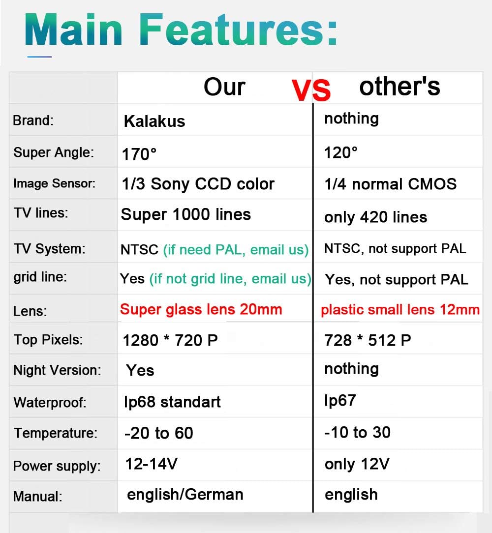 - Super IP68 wasserdichter Standard und 170 grad weitwinkel digitaler HD-Bildprozessor für sicheres und müheloses Parken.