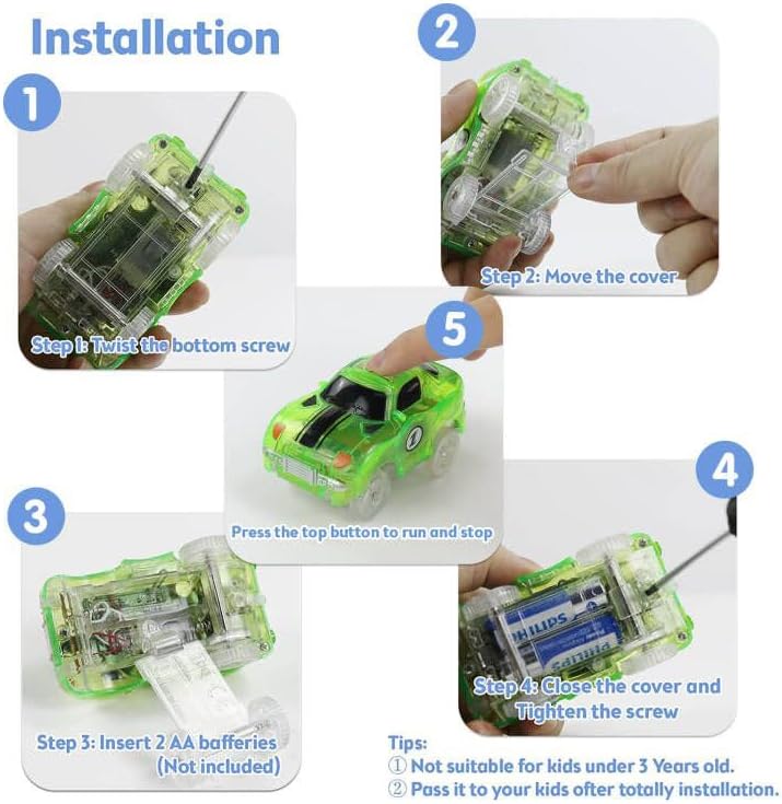 - 【Lernspiele ab 3 4 5 6 7 8 Jahre】 Dieses beleuchtete Kinder-Rennbahnauto ist ein grossartiges Lernspielzeug, das Kinder dazu ermutigt, motorische Fähigkeiten, Denkfähigkeiten, Fähigkeiten zur Problemlösung, Teamarbeit und mehr zu entwickeln. Kinder können durch Fantasie verschiedene autorennbahn erstellen. Die cars rennbahn besteht aus flexiblem Kunststoff für eine einfache Montage und Demontage und lässt sich leicht zusammenklappen, um Aufbewahrungsprobleme zu lösen.