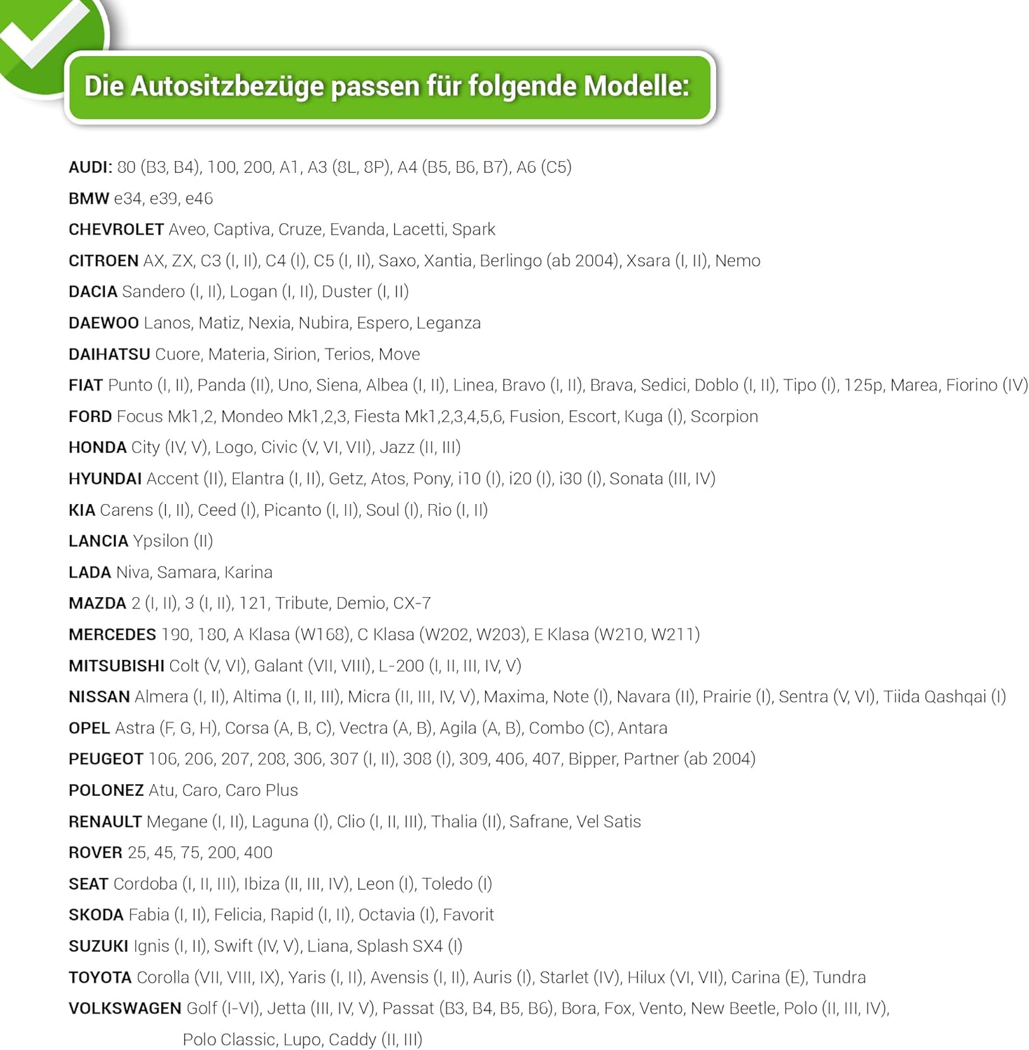- ✅ [ HOHE QUALITÄT ] - Für die Herstellung der Sitzbezüge wurden nur hochwertige Materialien verwendet. Die Autositzschoner bestehen aus einem schlingenartigen, weichen Dreischichtmaterial, das aus Polsterstoff, Verstärkungsschaum und einem