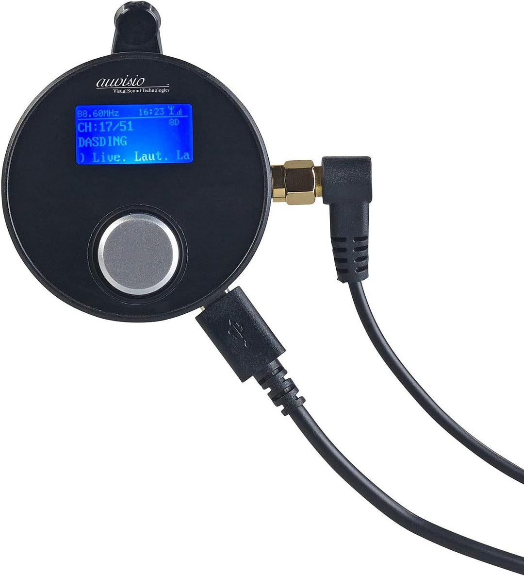 - Schliessen Sie den Empfänger per Micro-USB-Kabel an Ihr Kfz-USB-Netzteil an. • Schon kann das kabellose DAB-Streaming beginnen! • Automatische DAB+-Sendersuche und Liste für bis zu 60 Sender • Beleuchtetes LCD-Display für Sender-Anzeige und