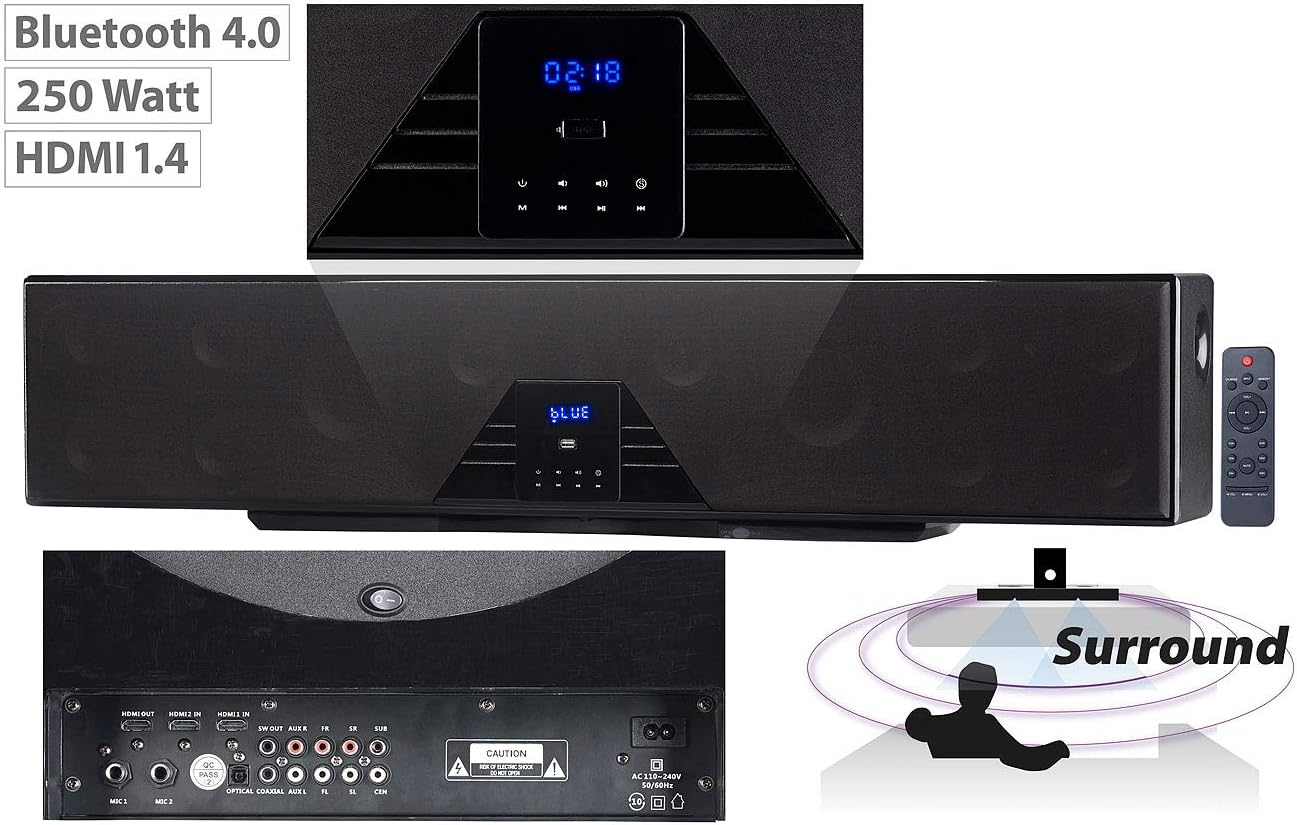 - Soundbar inklusive Fernbedienung, Audiokabel (3,5-mm-Klinke auf Stereo-Cinch), HDMI-Kabel, 230-V-Stromkabel, Material für Wandmontage und deutscher Anleitung. Heimkino-Soundbar - Ausserdem relevant oder passend zu: HiFi Verstärker, Fernseher, Aktive,