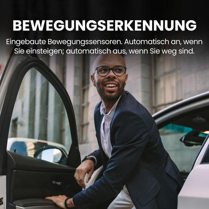 - [Auto Power On / Off] Wenn Sie das Auto verlassen und sich Ihr Bluetooth-Gerät vom Roadtrip trennt, schaltet es sich automatisch aus. Wenn Sie zu Ihrem Auto zurückkehren, erkennt der integrierte Bewegungssensor des Roadtrip Ihre Anwesenheit, schaltet