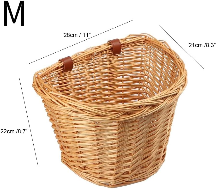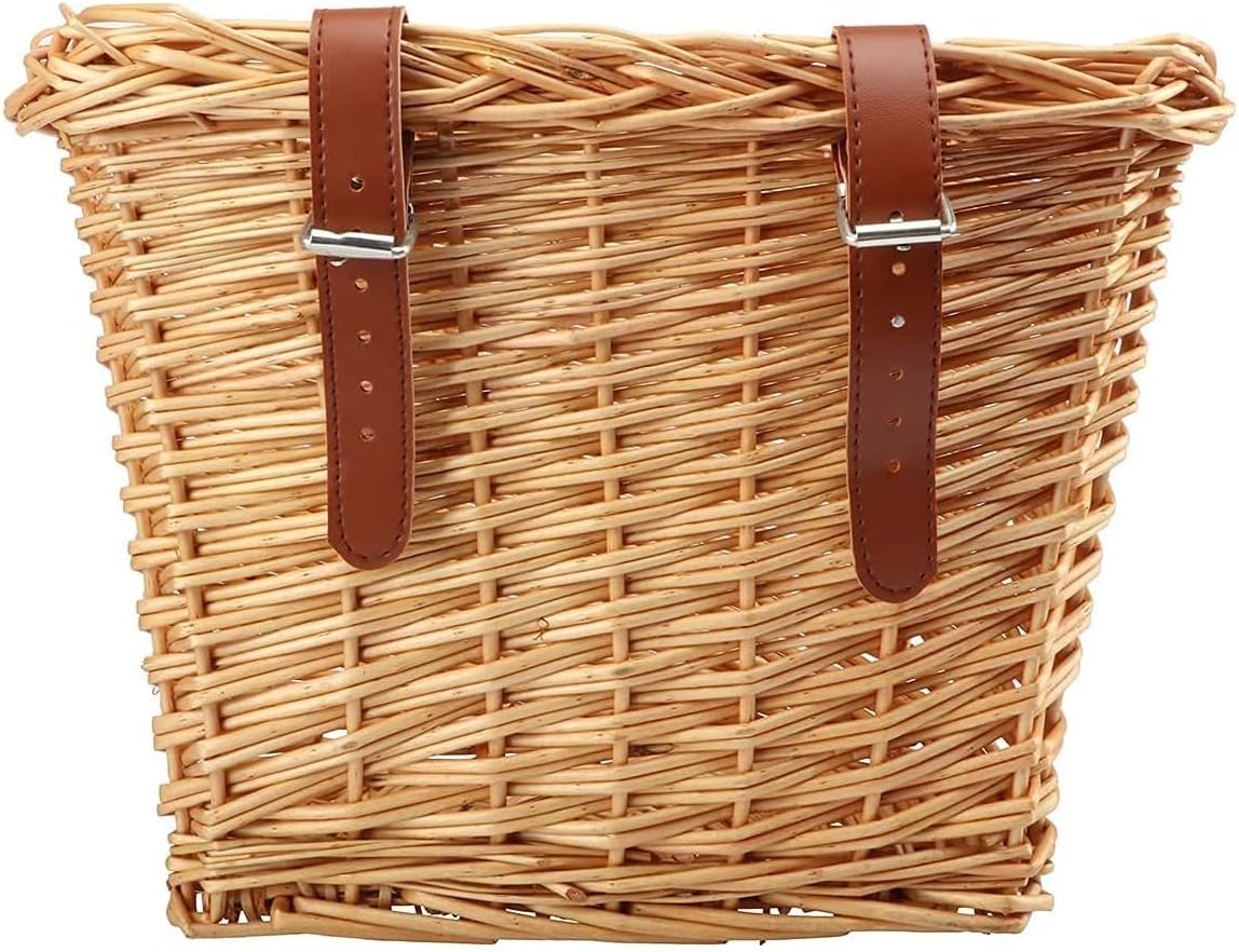 - Verstellbarer Gürtel: Der Weidenfahrradkorb wird mit einem wasserdichten und verstellbaren Gürtel geliefert, der an den vorderen Lenker Ihres Fahrrads passt. Die Farbe des Gürtels ist je nach Charge schwarz oder braun.