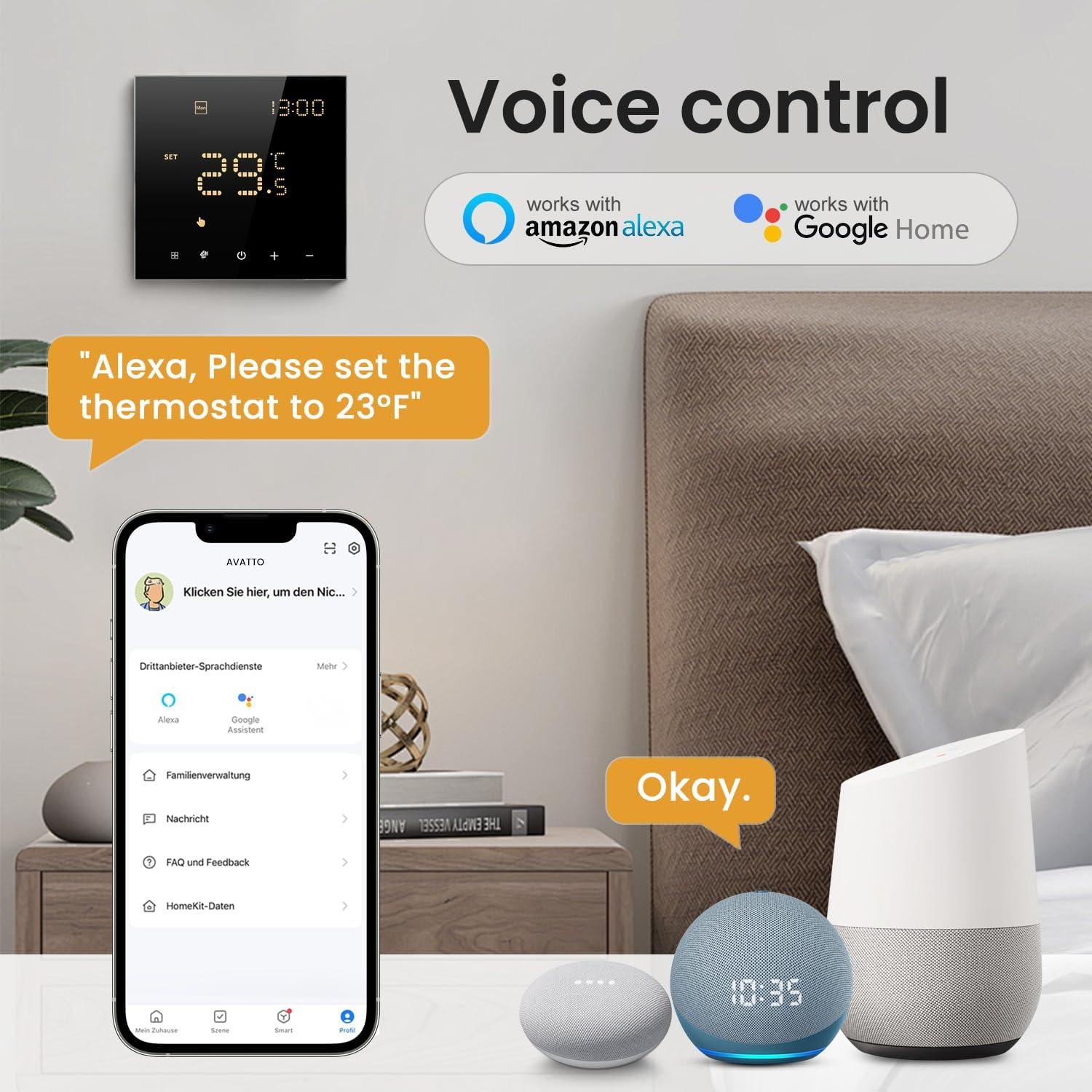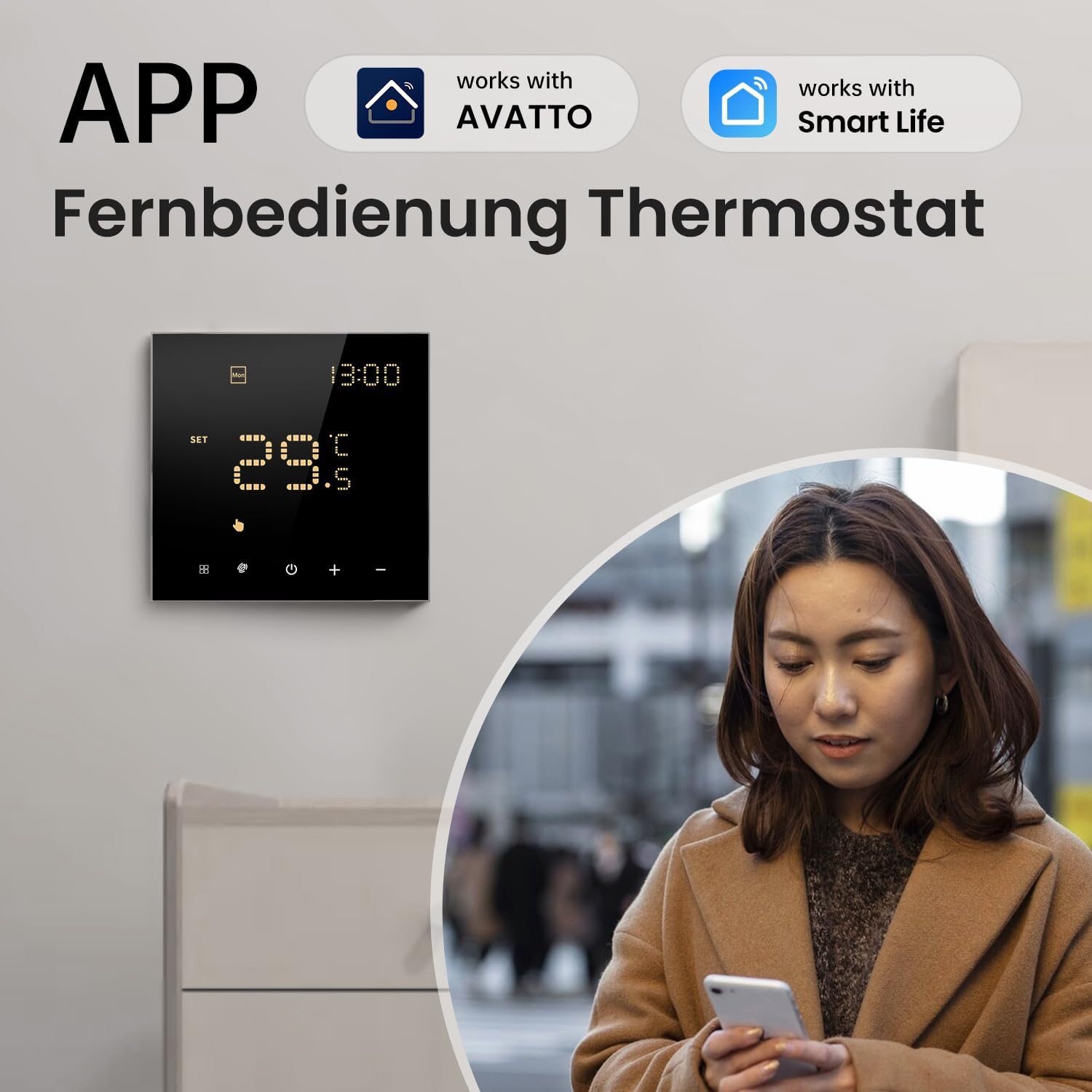 - Smart WiFi Boiler Thermostat➤Dieses AVATTO-Thermostat kann auch im Heizsystem von Gaskessel oder Ölkessel verwendet werden. Wenn der Thermostat Heizung, des Boiler beginnt die Verbrennung und liefert warmes Wasser für die Fussbodenheizung oder
