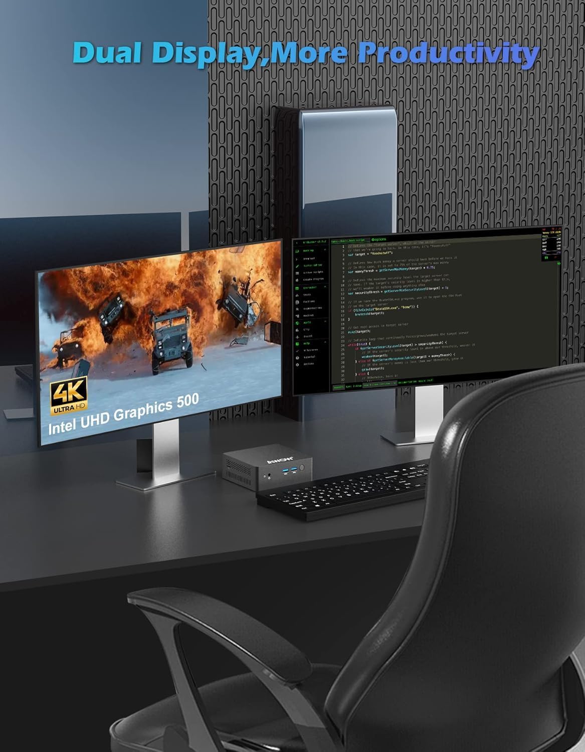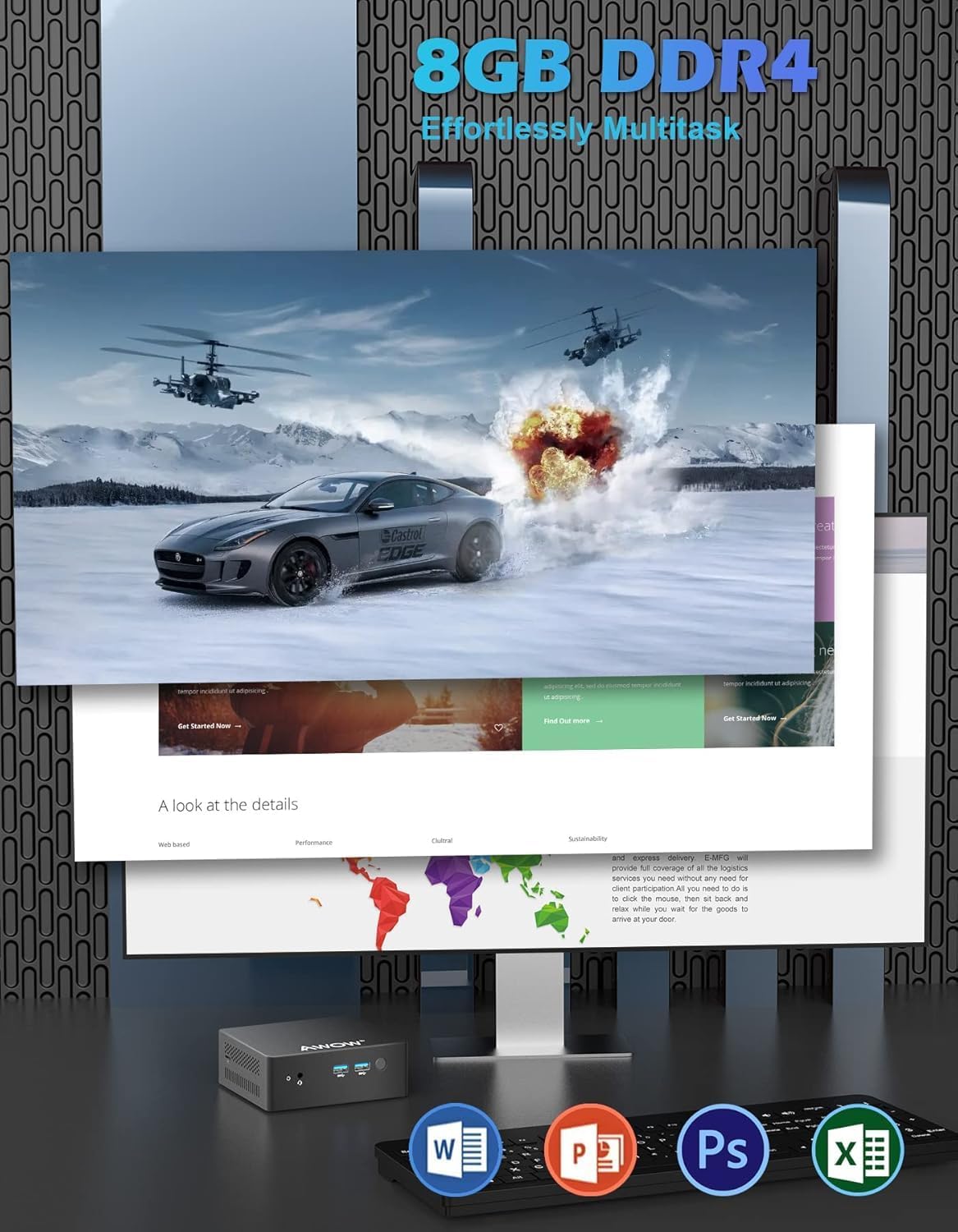 - ❤ 【Hervorragende Hardware und Betriebssystem】AL34 Mini-Desktop-Computer, entwickelt vom celeron Platform Motherboard mit Quad-Core-CPU J3455 mit bis zu 2,3 GHz, 8 GB DDR4, integrierter M.2 128 GB SSD, 2,4G und 5G Dualband-WIFI , Dual HDMI für 4K