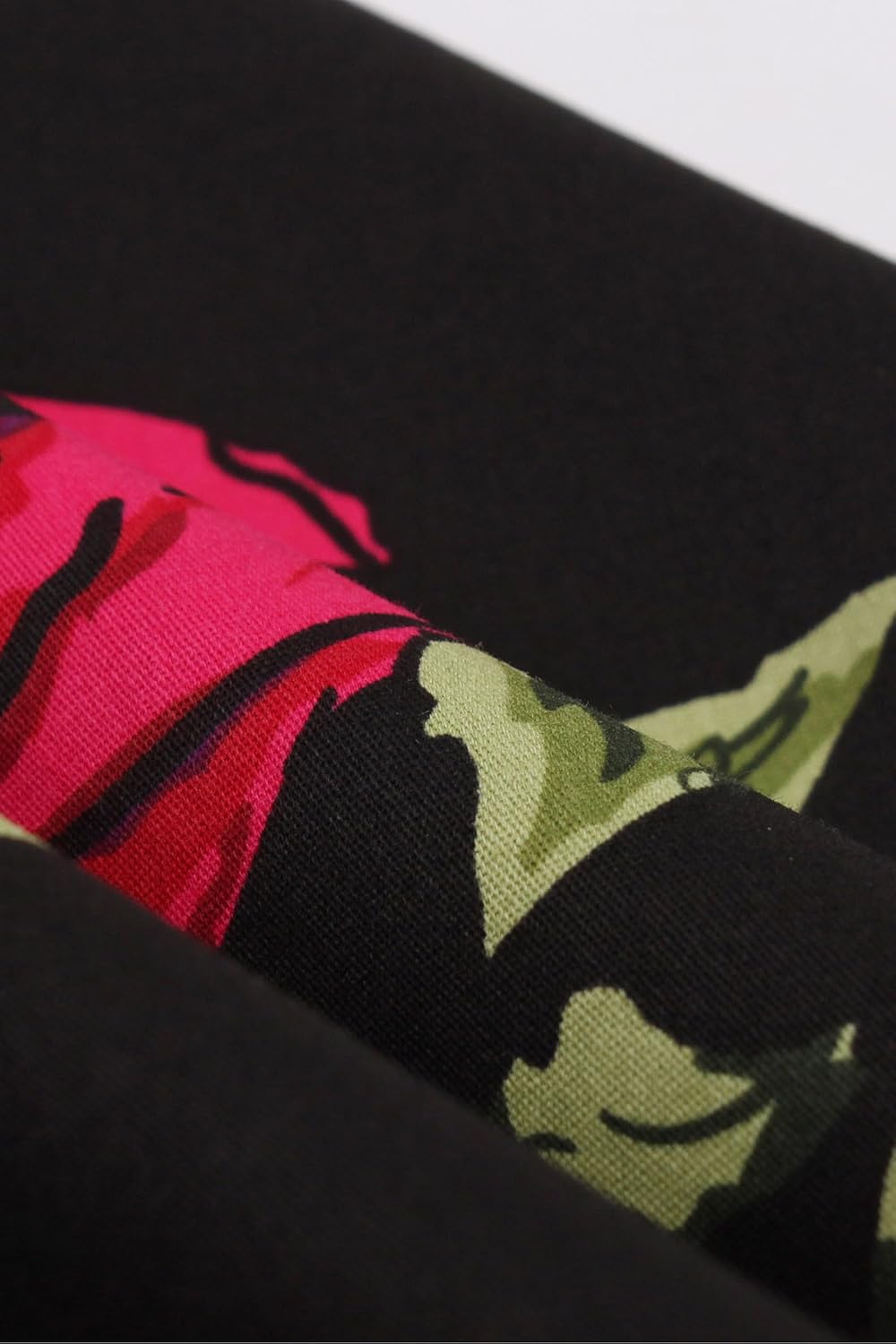 - Oberteil aus Dehnbarem und Weichem Schwarzem Stoff, Unterteil aus Geblümtem Baumwollstoff