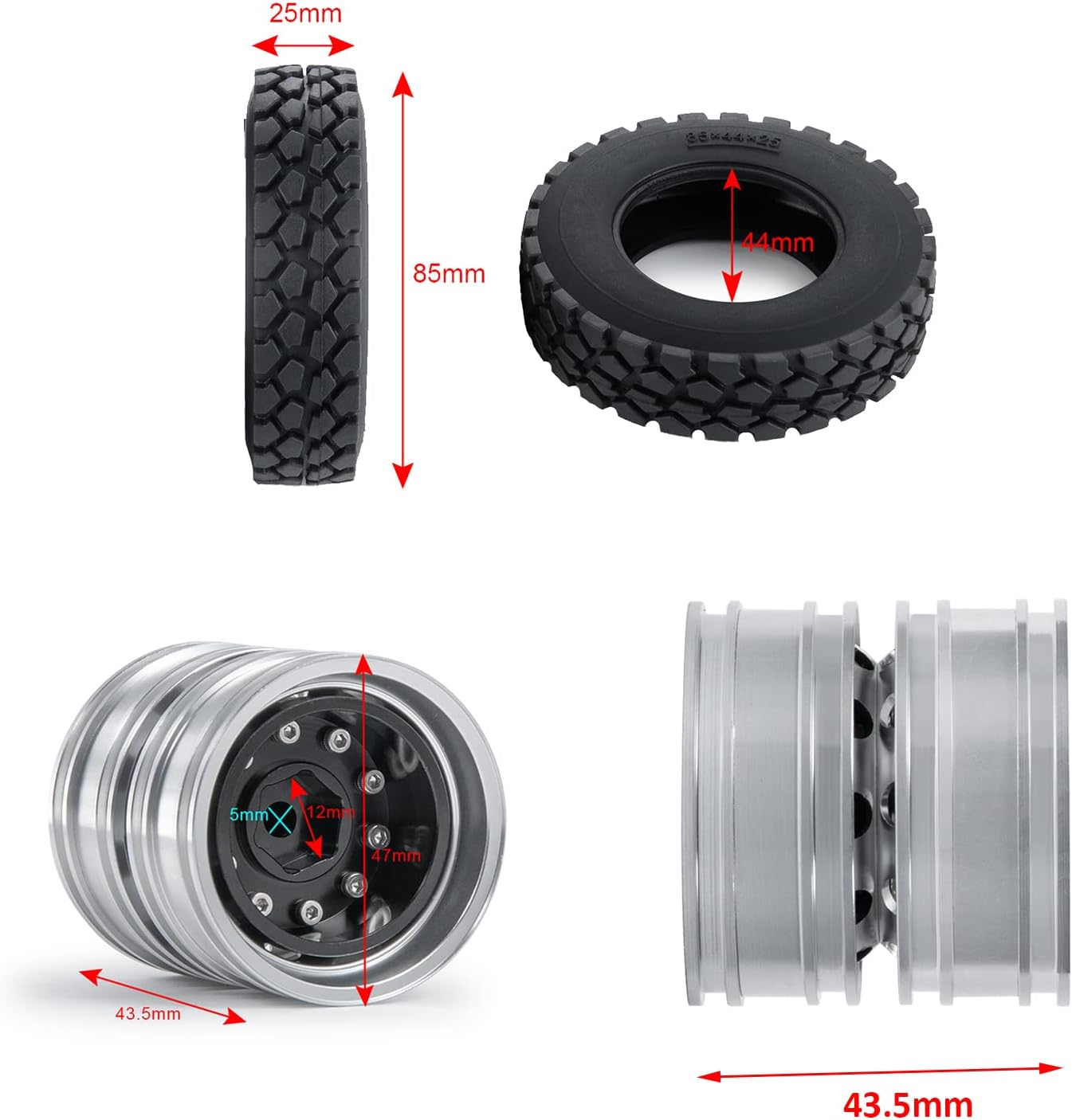 - Lieferumfang: 4-teiliges Set für Felgen (= 4 Stück Dual Hinterradfelgen + 8 Stück Reifen)