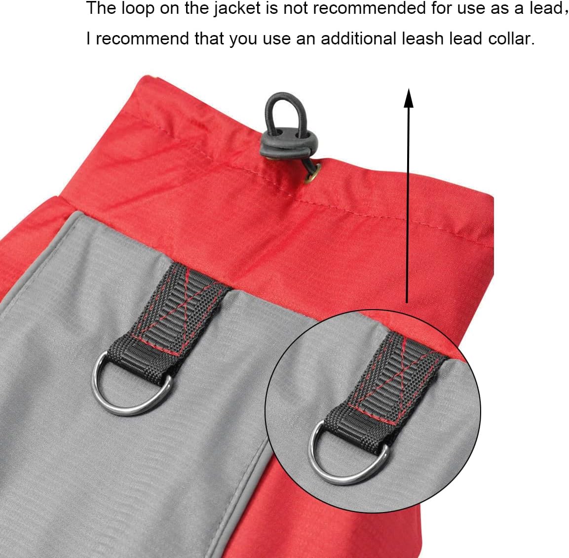 - Die Schlaufe an der Jacke kann nicht als Leine verwendet werden. Möglicherweise benötigen Sie ein zusätzliches Leinenhalsband.