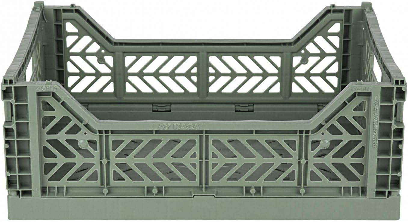 - Lieferumfang und Details - Ay-Kasa Klappkiste, stabile Faltkiste aus Kunststoff, stapelbar, Masse: Midi (40x30x14cm), Farbe: almond green