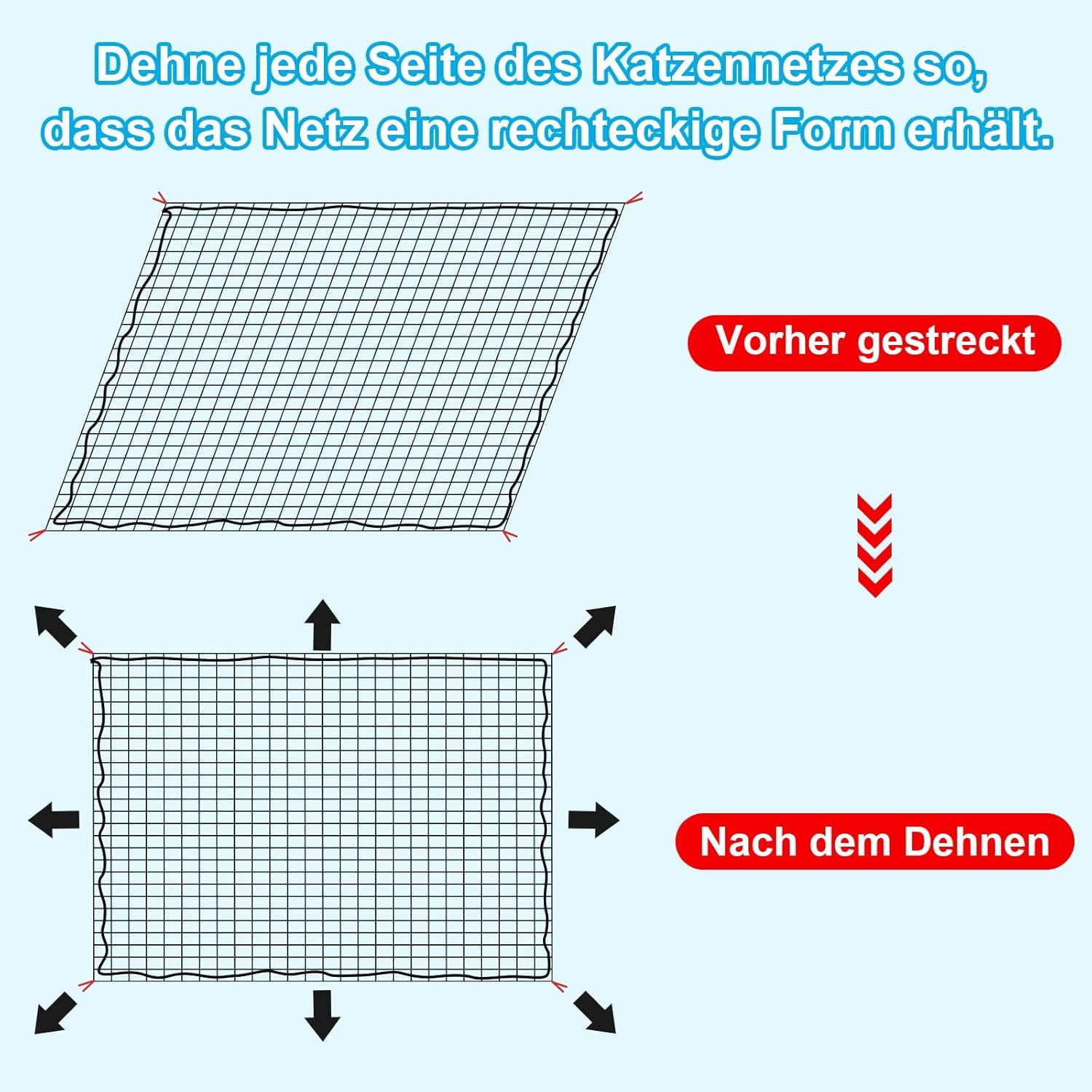 - Robustes Material - Unser Katzenschutznetz besteht aus hochdichtem Polyethylen und Edelstahl, jeweils 8 Stränge aus hochwertigem Netz plus 1 Strang aus Edelstahl, wodurch dieses Netz haltbarer wird und dem Klettern und Kratzen der Katze standhält.