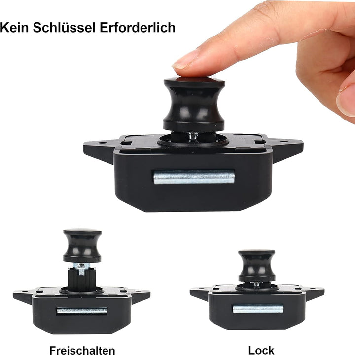 - 🔒【Langlebiges Verriegelung】Druckknopf Verriegelung ist aus Zinklegierung und ABS, die Tastenoberfläche ist verzinkt, nicht leicht zu rosten, glatt und angenehm zu bedienen, die Schale besteht aus sicherem ABS-Material, stark, korrosionsbeständig, hat eine lange Lebensdauer.
